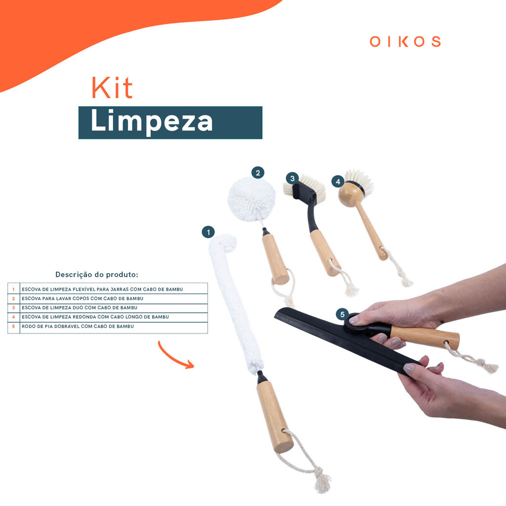 Kit 4 Escova de Limpeza E Rodo de Pia Preto - Oikos