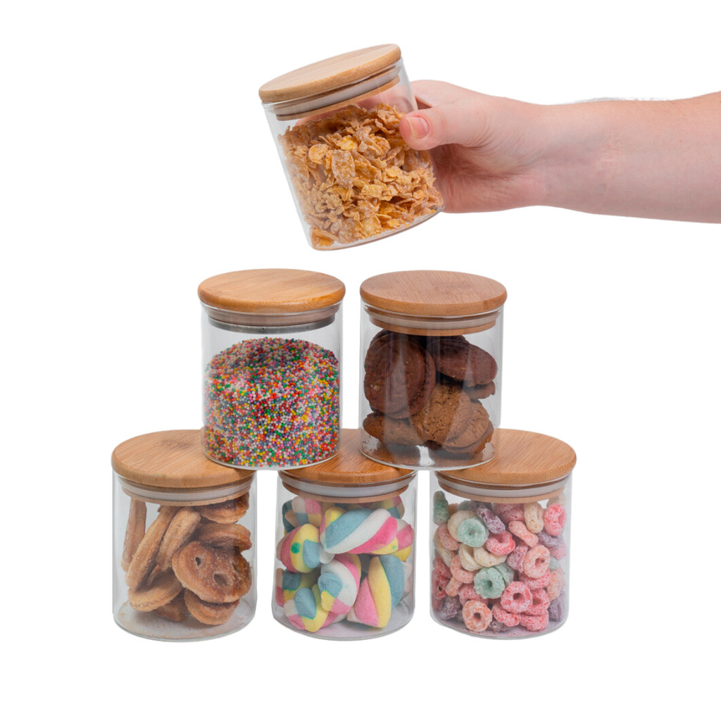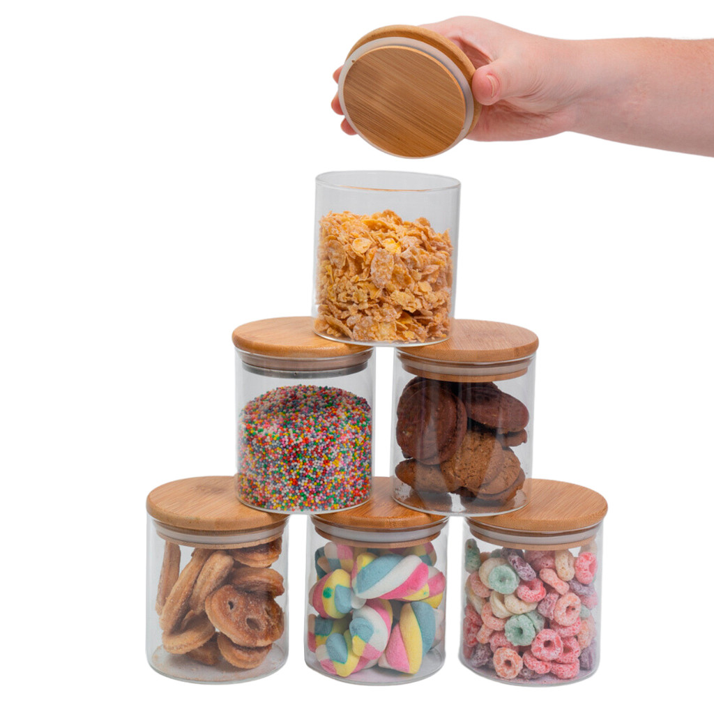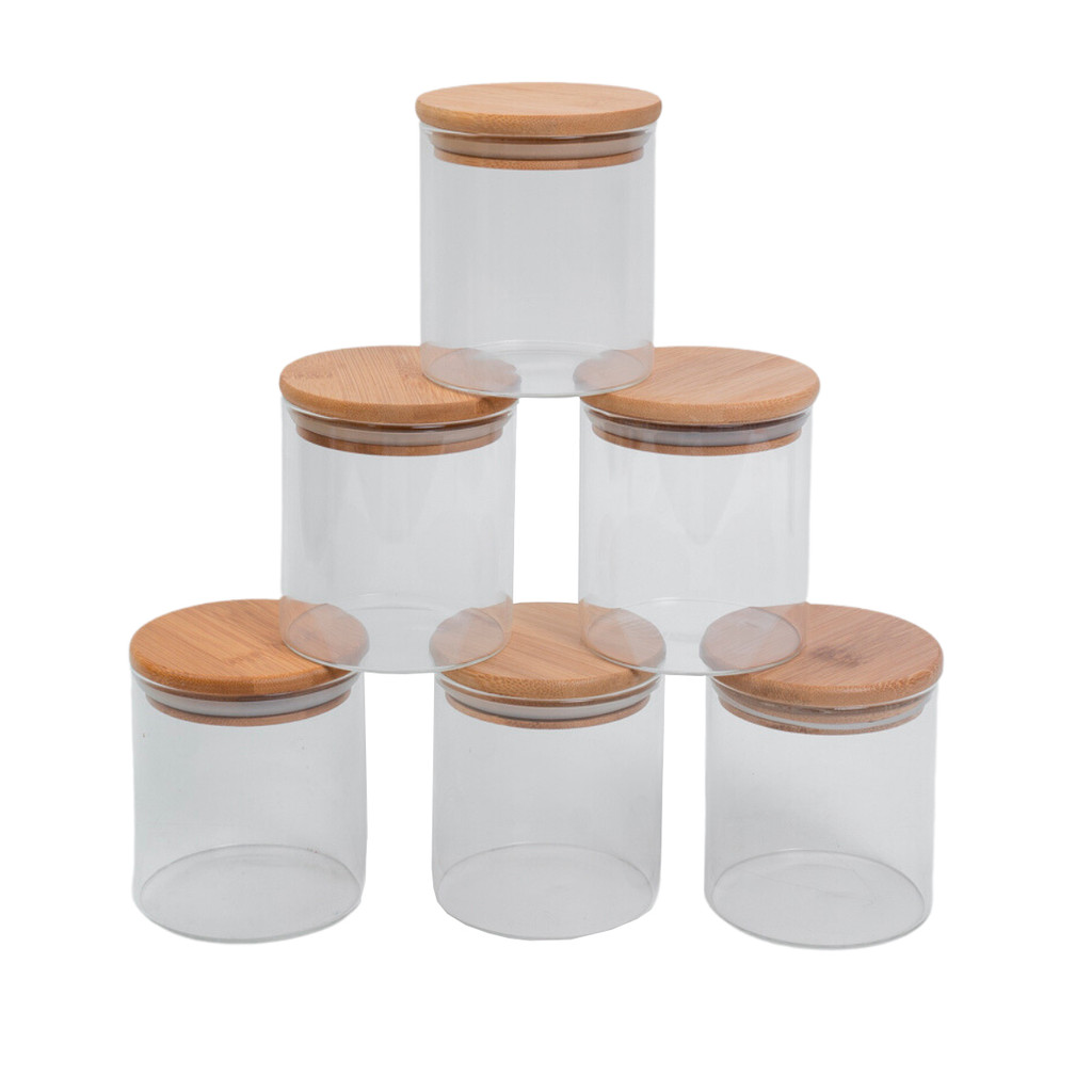 Conjunto de 6 Potes Herméticos de 400 Ml com Tampa de Bambu Oikos