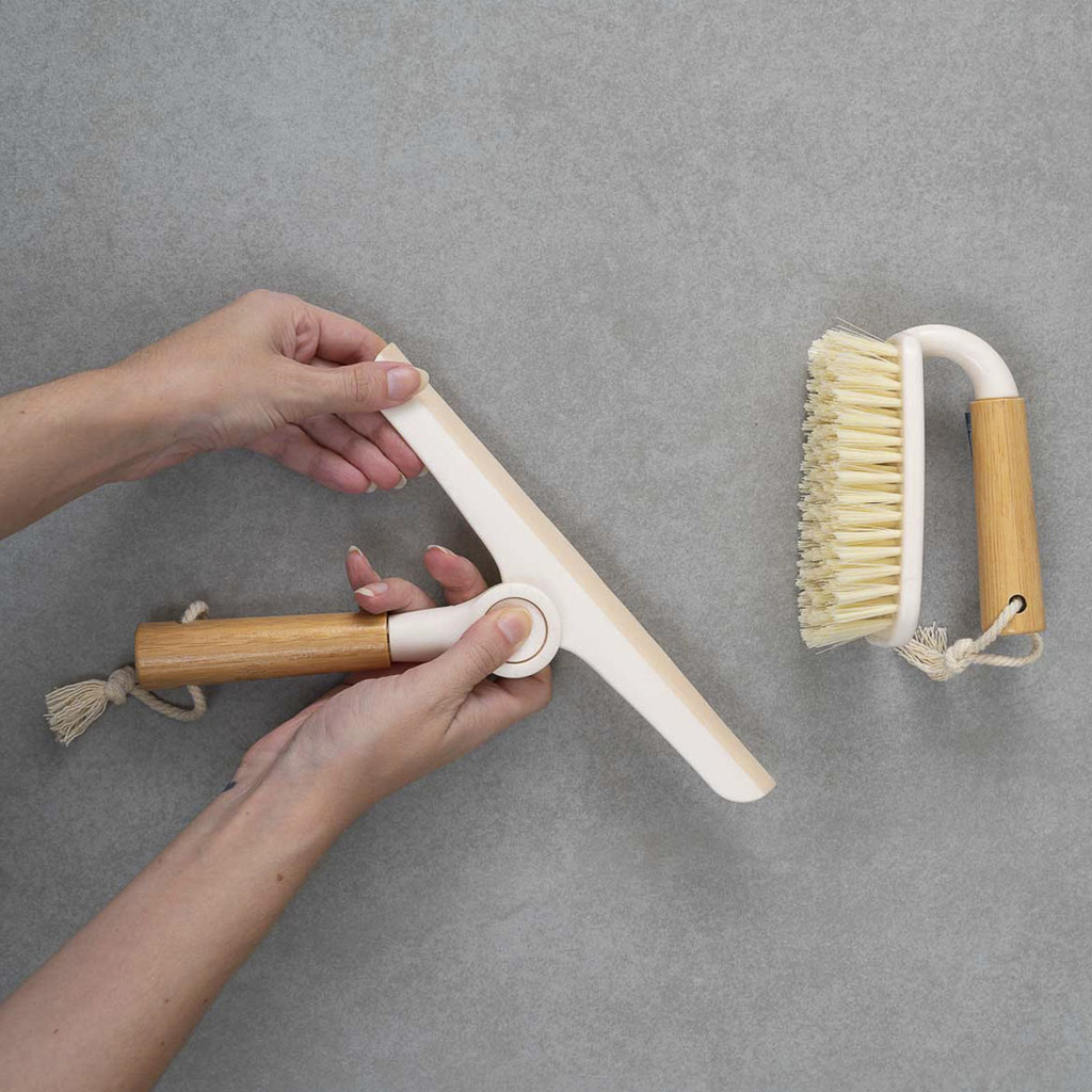 Kit Escova de Limpeza Multiuso com Cabo de Bambu E Rodo de Pia Dobrável com Cabo de Bambu Off-White Oikos