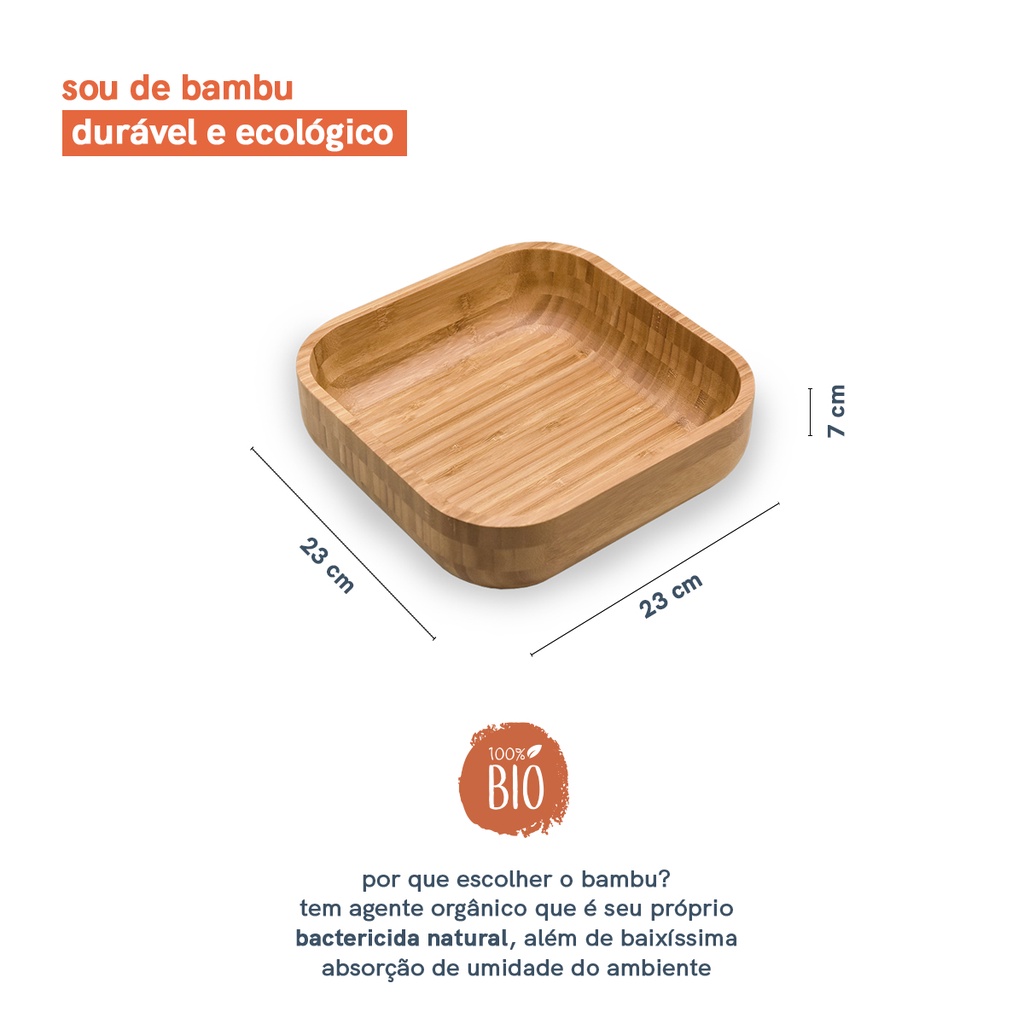 Kit Bowl Quadrado De Bambu Com Pegador Mãozinha - 2pçs