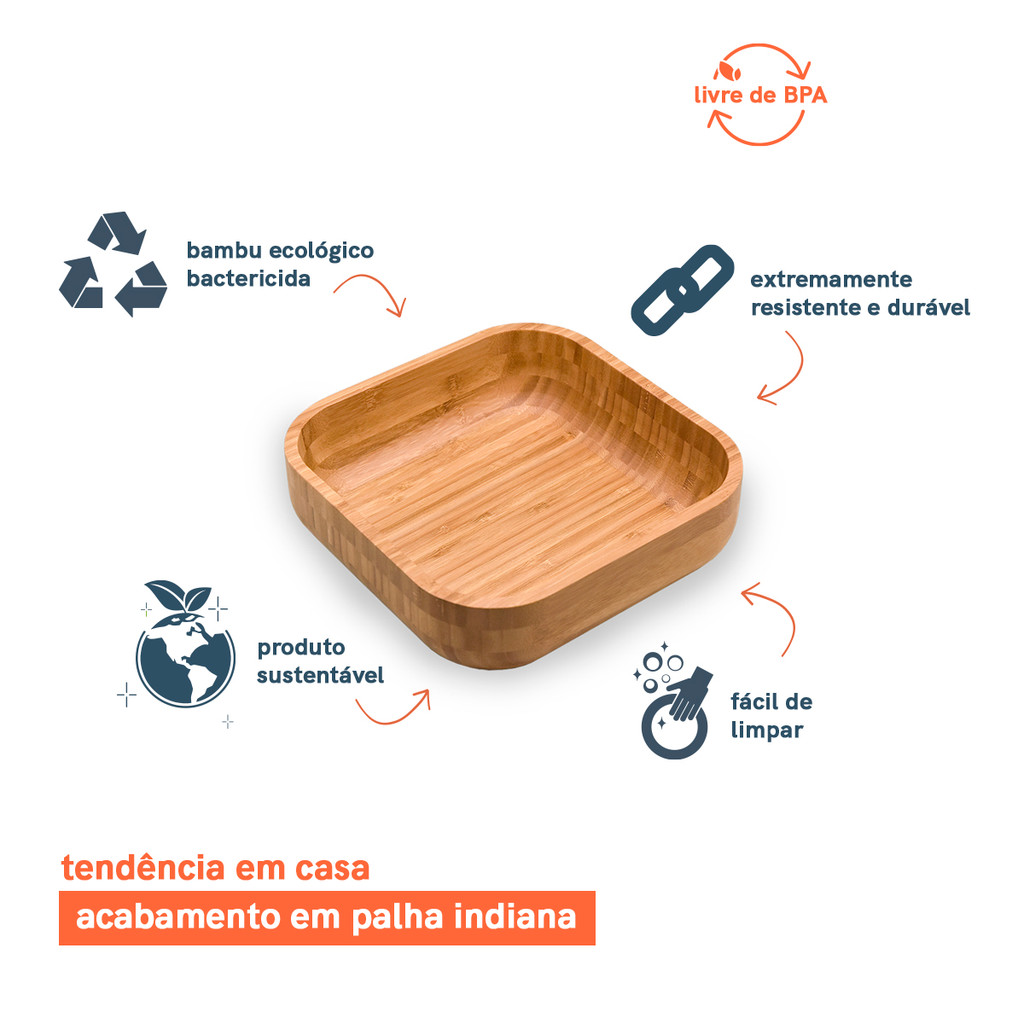 Kit Bowl Quadrado de Bambu com Pegador Mãozinha - 2pçs Oikos