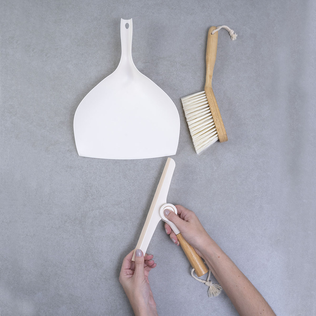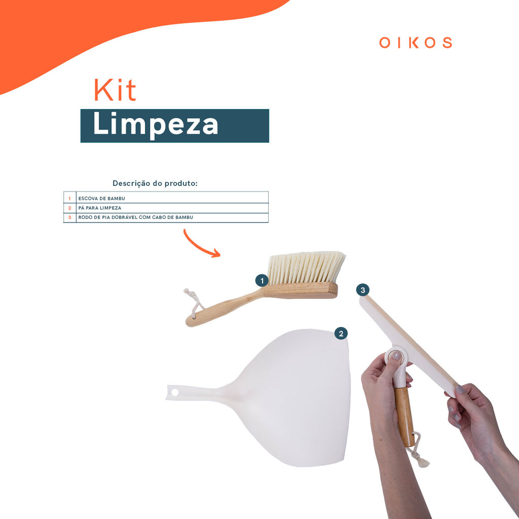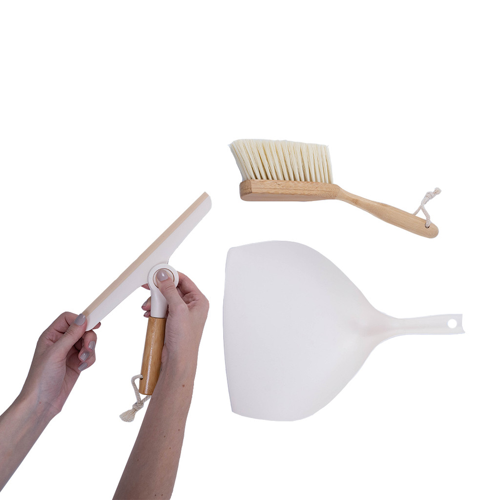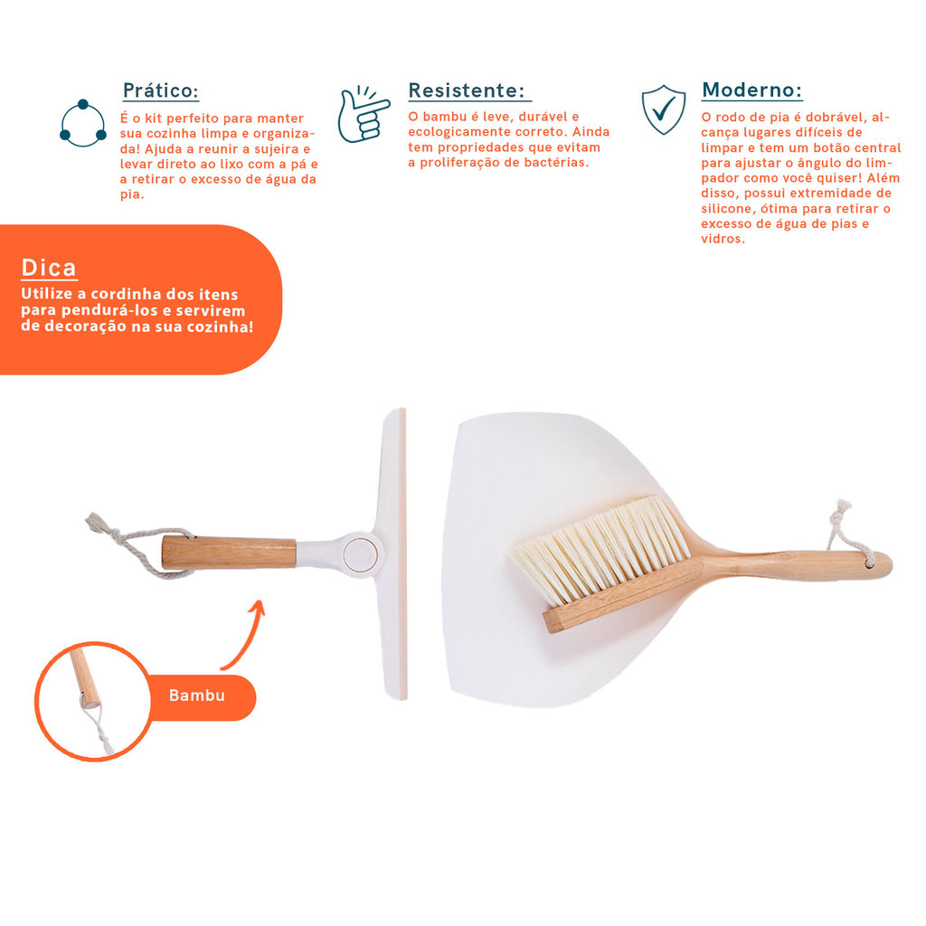 Kit Escova de Bambu E Rodo de Pia Off-White - Oikos