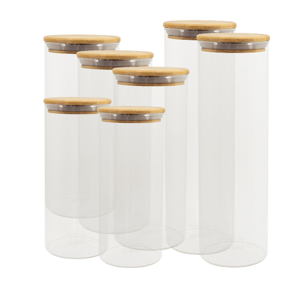 Potes de Vidro P/ Mantimentos C/ Tampa Bambu Oikos - 7 Pçs
