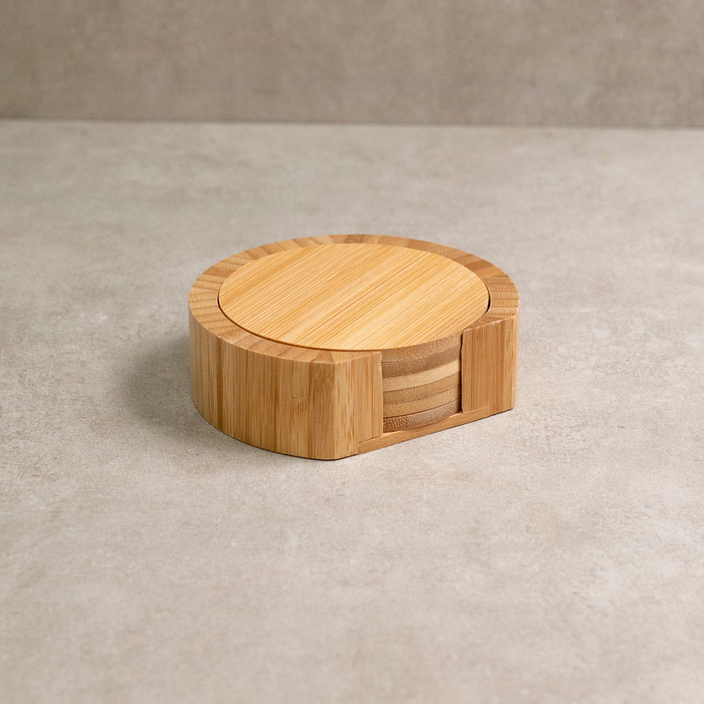 Jogo de Porta Copos Redondo Em Bambu 6pcs - Oikos