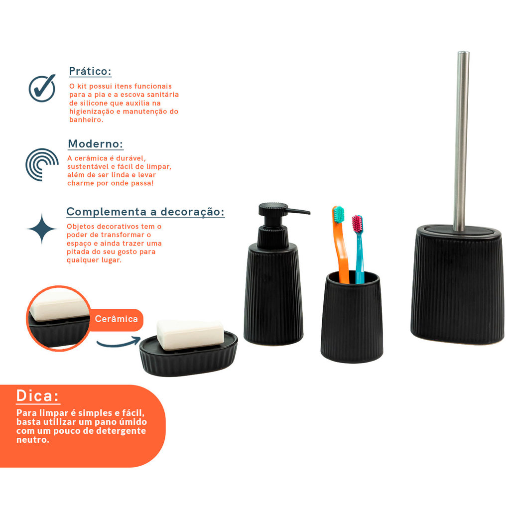 Kit Banheiro Saboneteira E Escova Sanitária 4 Pçs - Oikos