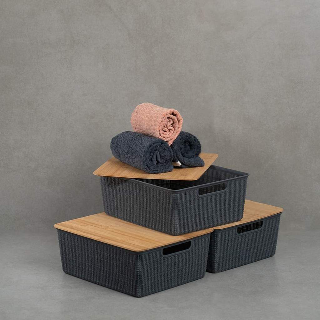 Kit 3 Caixas Organizadoras Tampa de Bambu 12l Cinza - Oikos