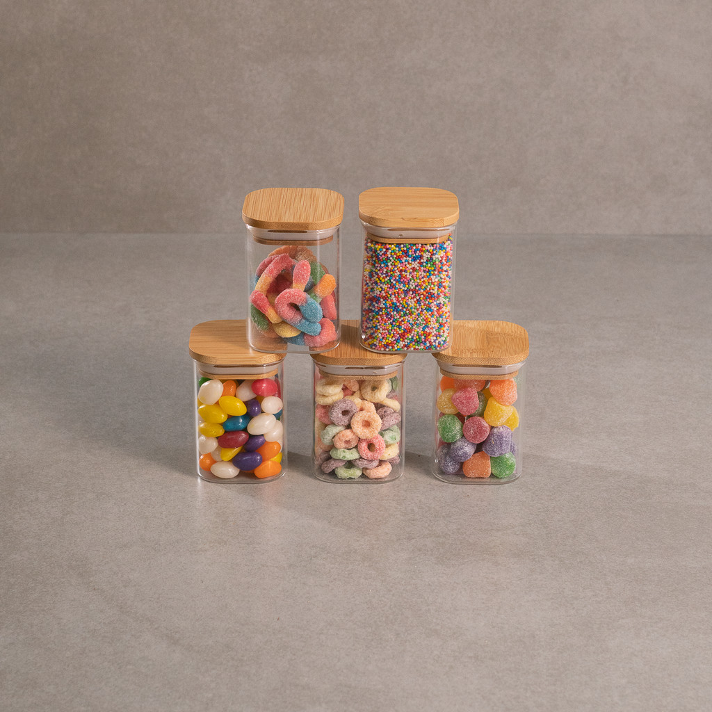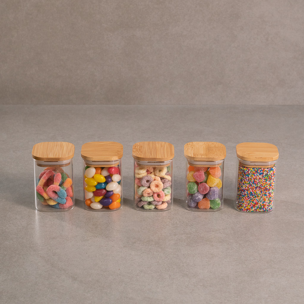 Kit de Pote Hermético de Vidro Quadrado com Tampa de Bambu 5 Peças - Oikos