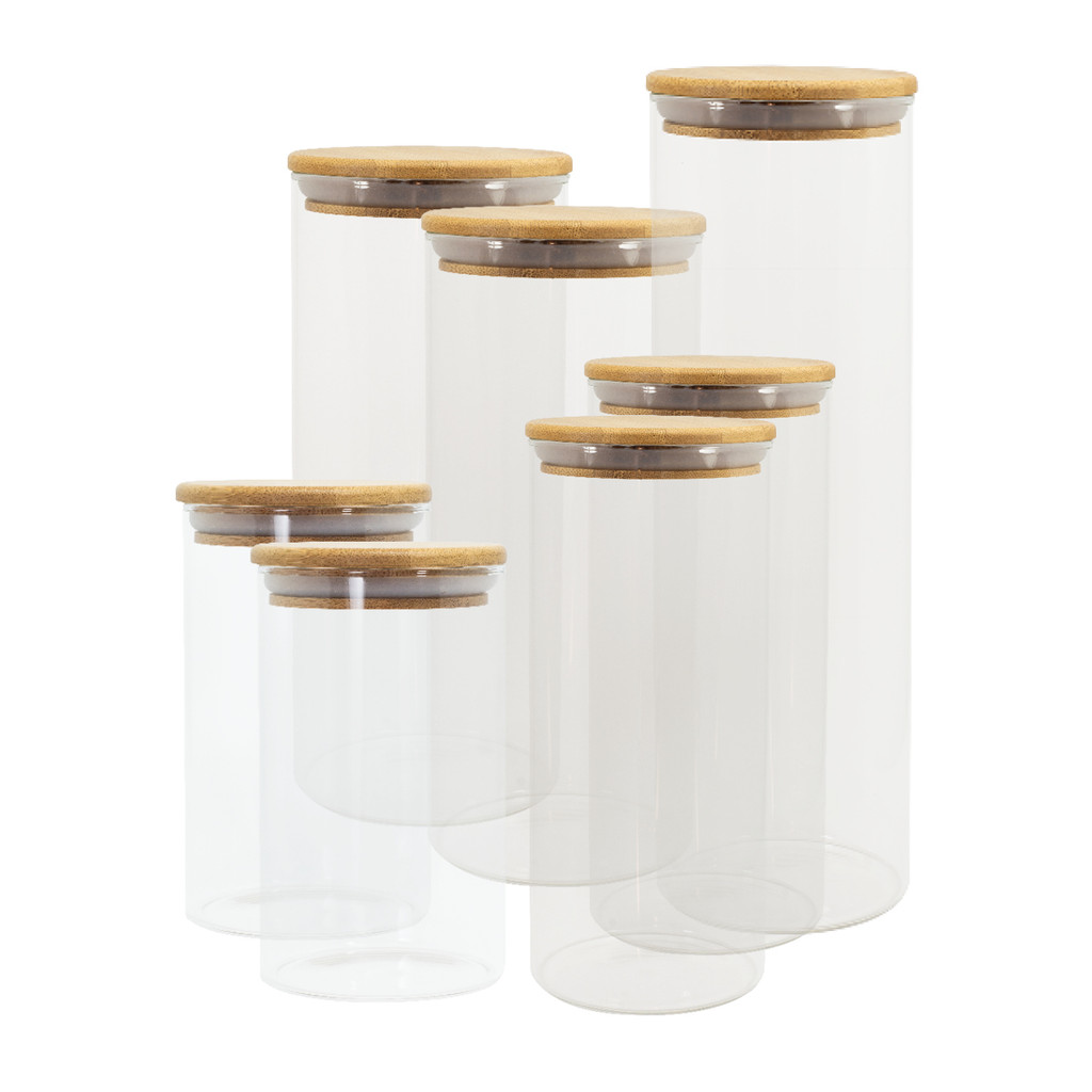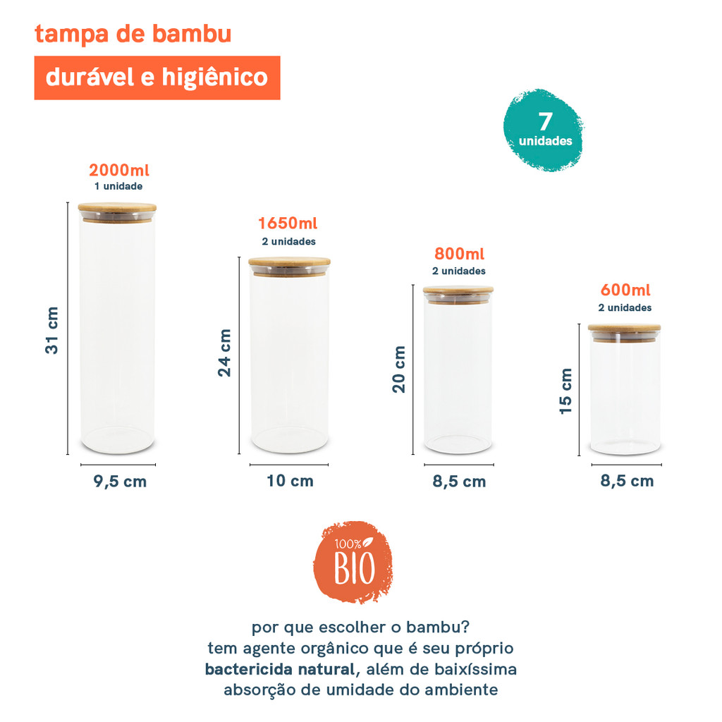 Potes De Vidro P/ Mantimentos C/ Tampa Bambu Oikos - 7 Pçs