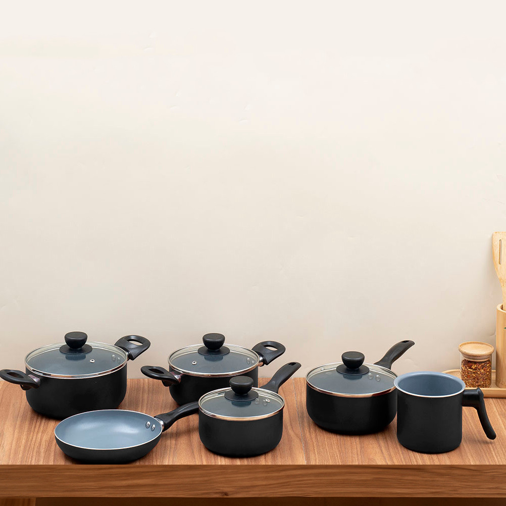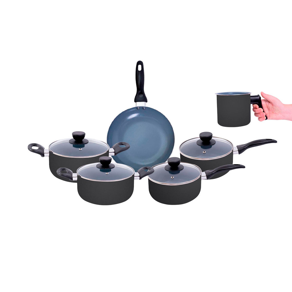 jogo de panelas 6 pçs antiaderentes de cerâmica e alumínio - oikos