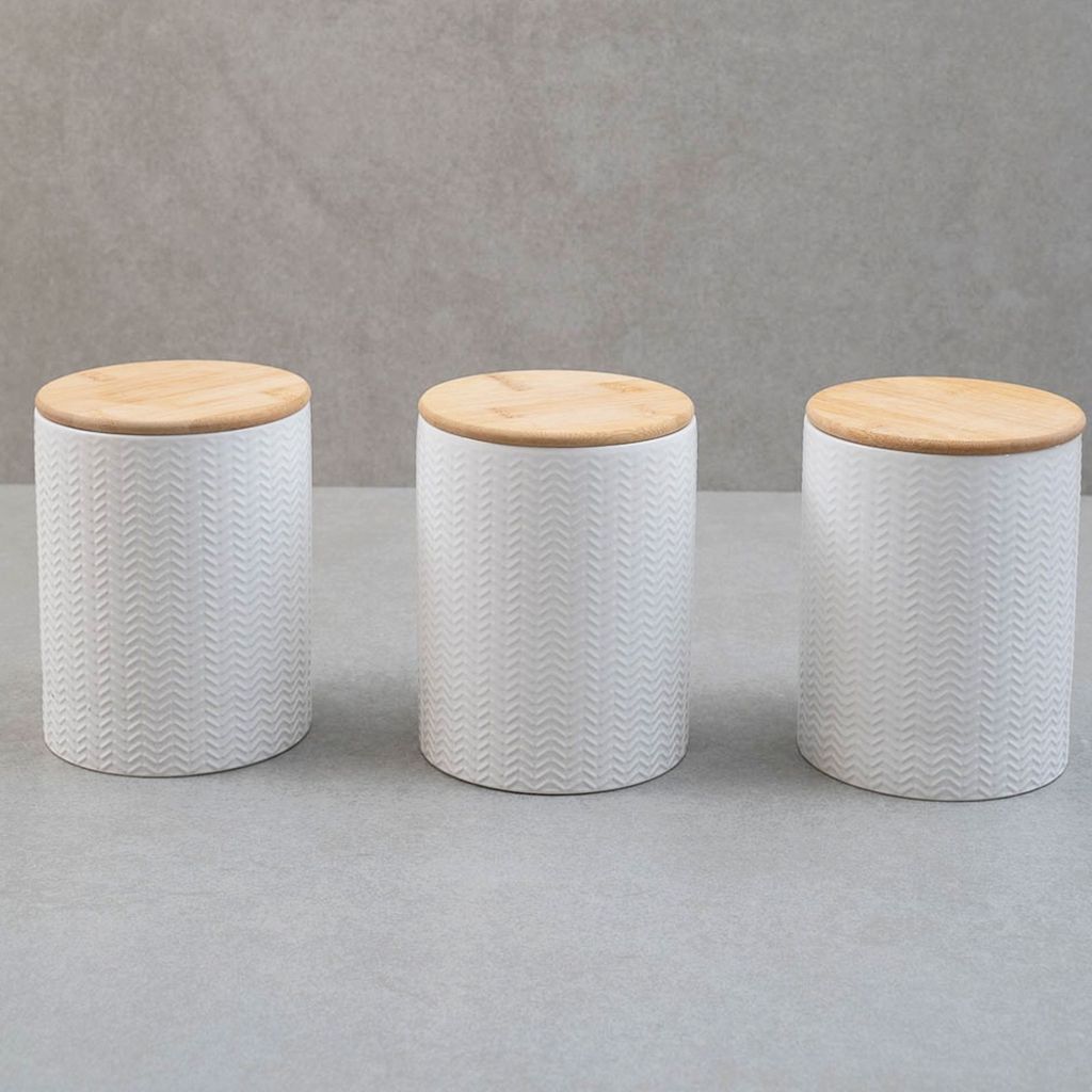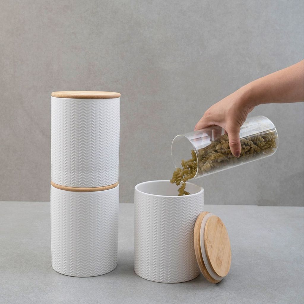 Kit 3 Potes Dolomita com Tampa de Bambu Zig Zag 1,2l - Oikos