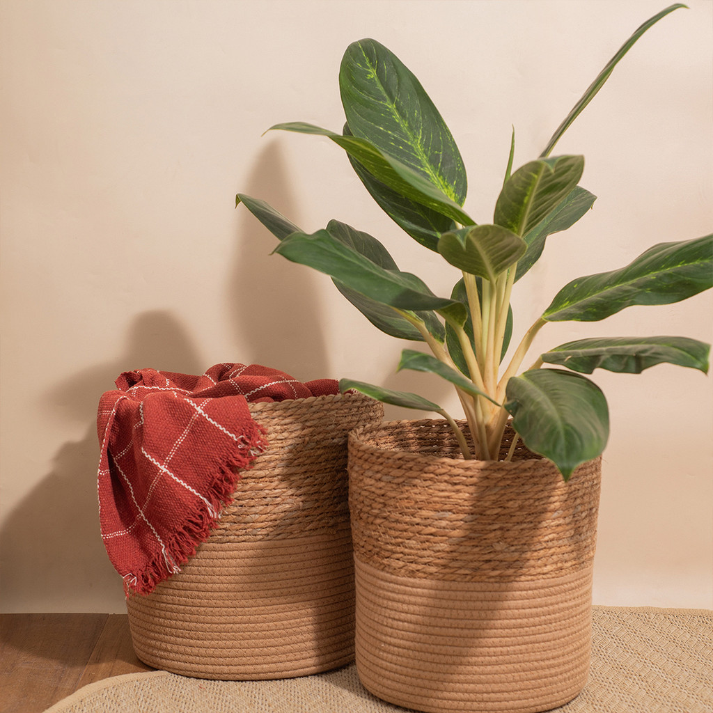 cesto organizador redondo 32cm de palha seagrass e corda - Oikos