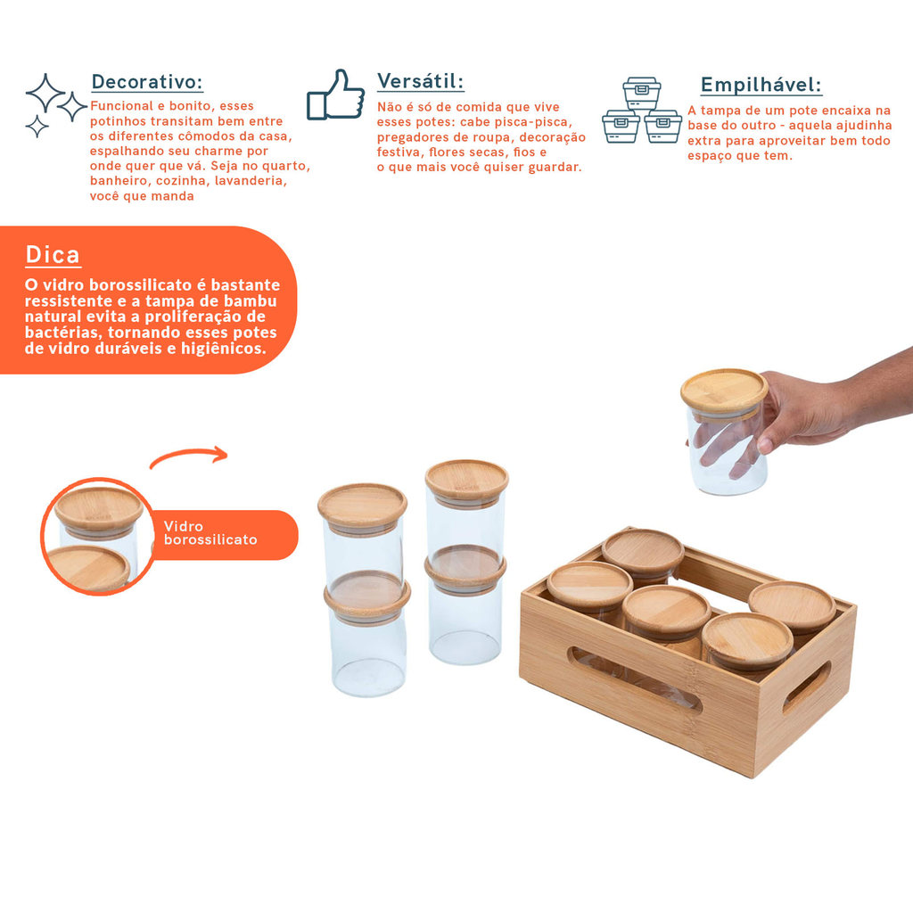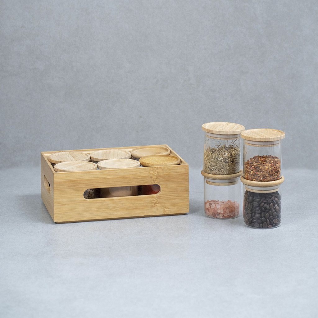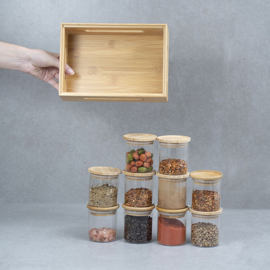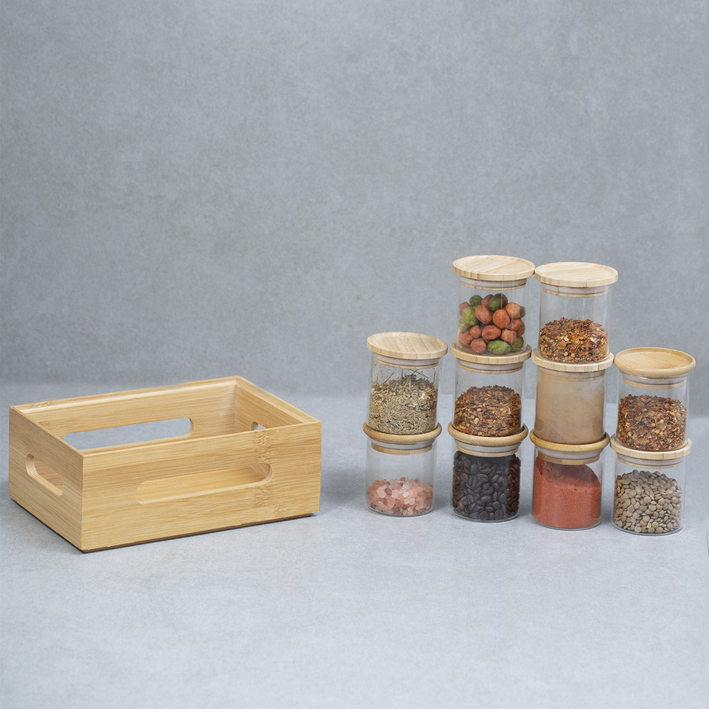 Kit Caixa de Bambu Vazada E 10 Potes de Vidro 200ml – Oikos