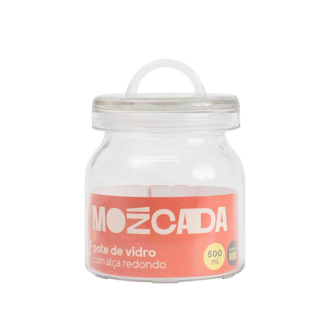 Pote de vidro 500ml com alça na tampa redondo - Mozcada