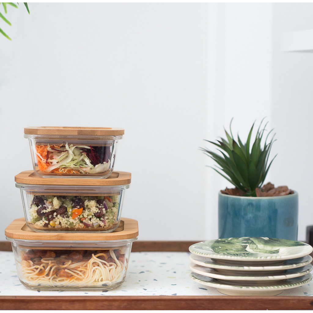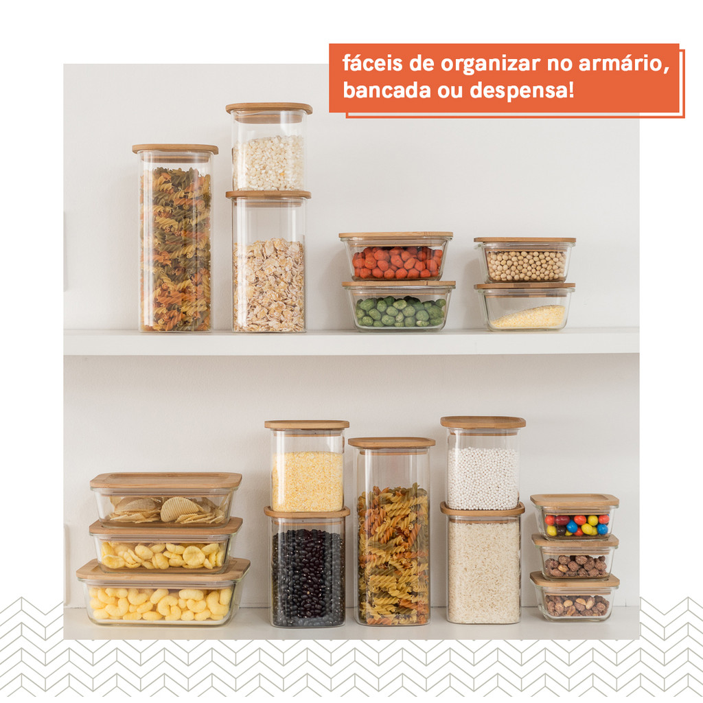 Conjunto de 4 Potes Herméticos de 320 Ml com Tampa de Bambu Oikos