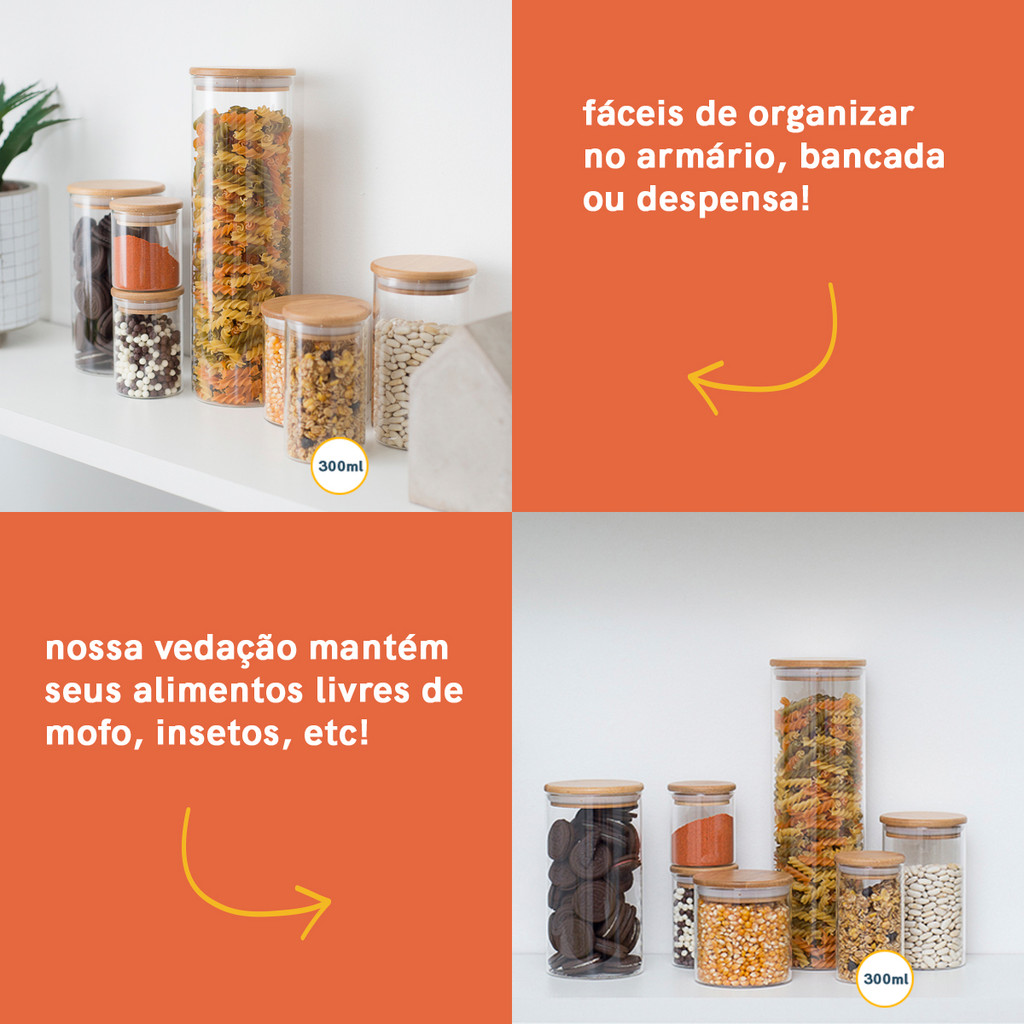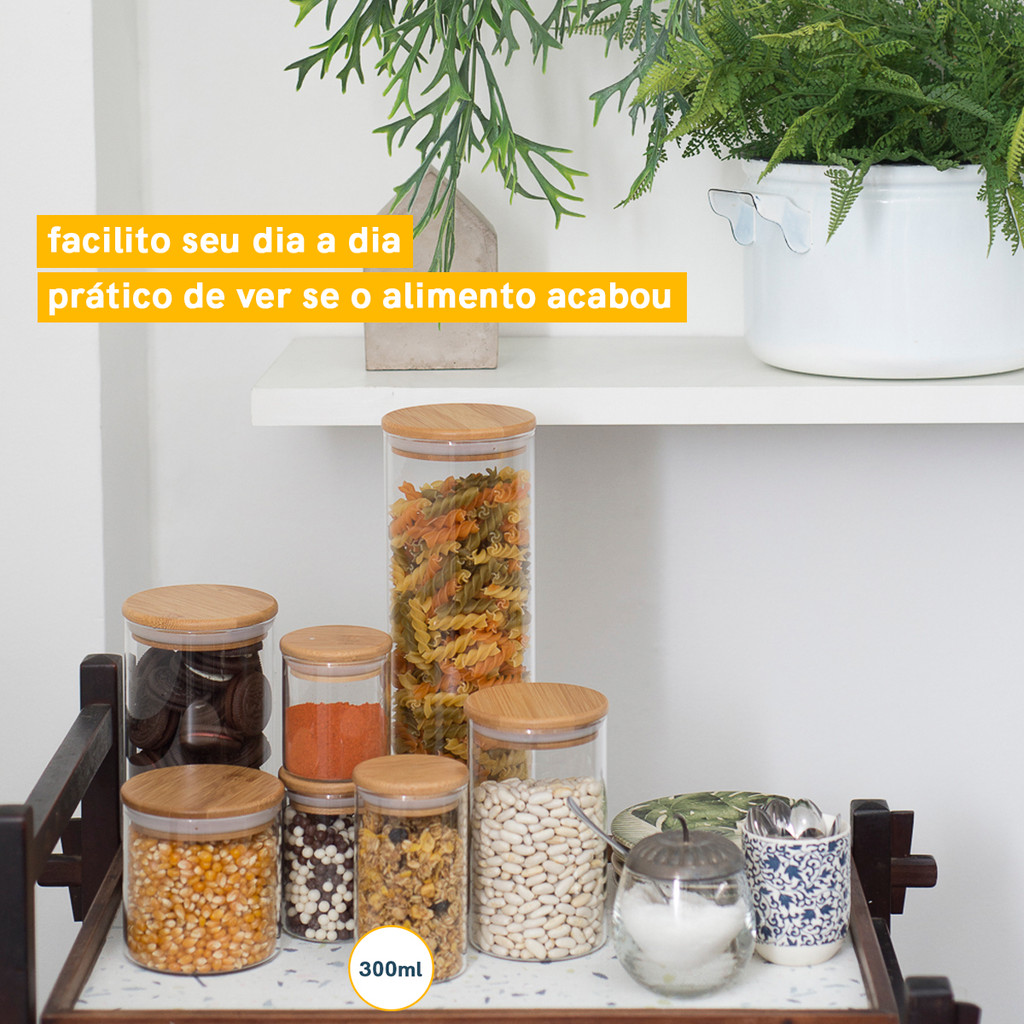 Pote de Vidro de Mantimentos 300ml C/ Tampa de Bambu Oikos