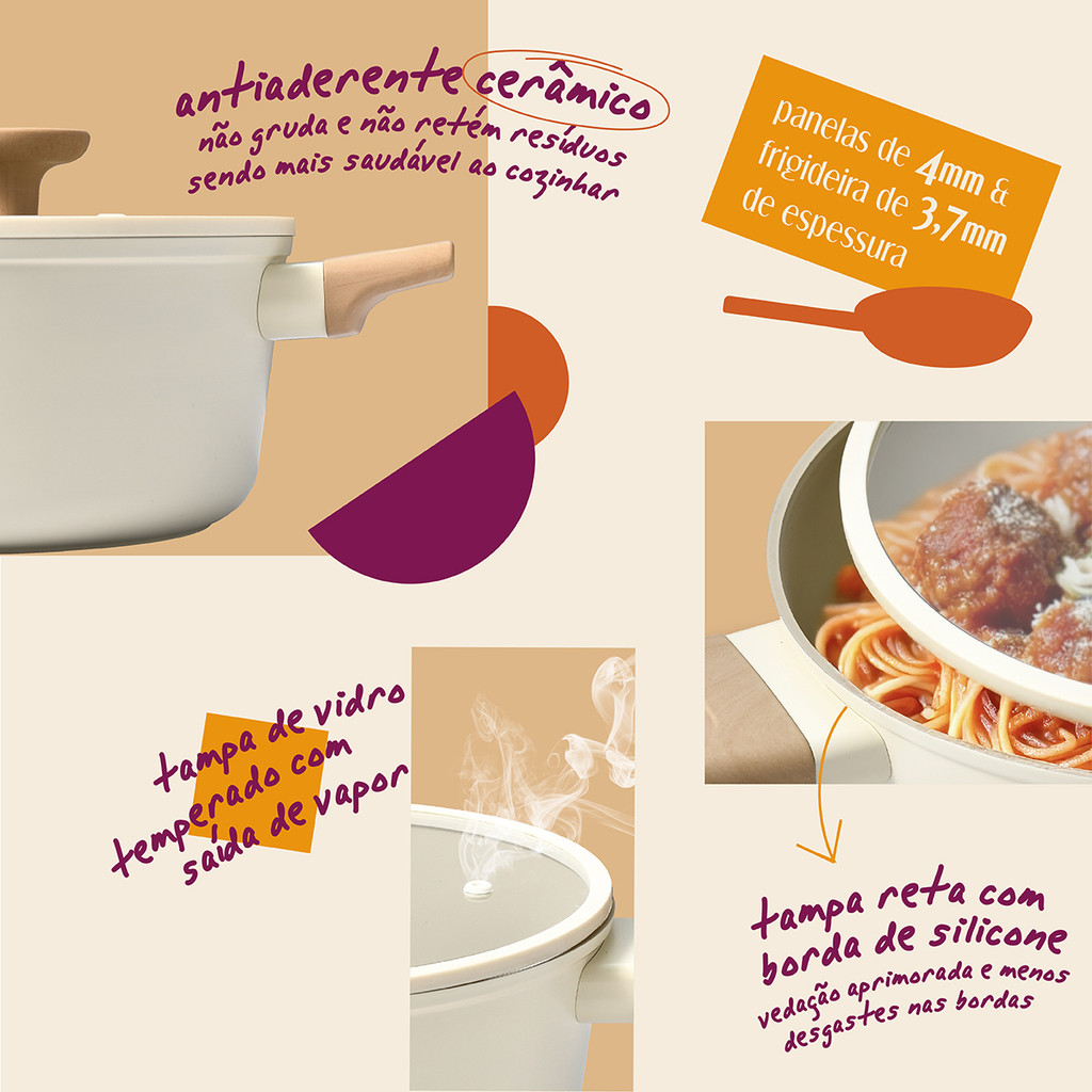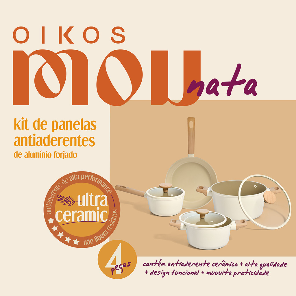 KIT 4 PANELAS DE INDUÇÃO COM ANTIADERENTE CERÂMICO MOU DE NATA - OIKOS