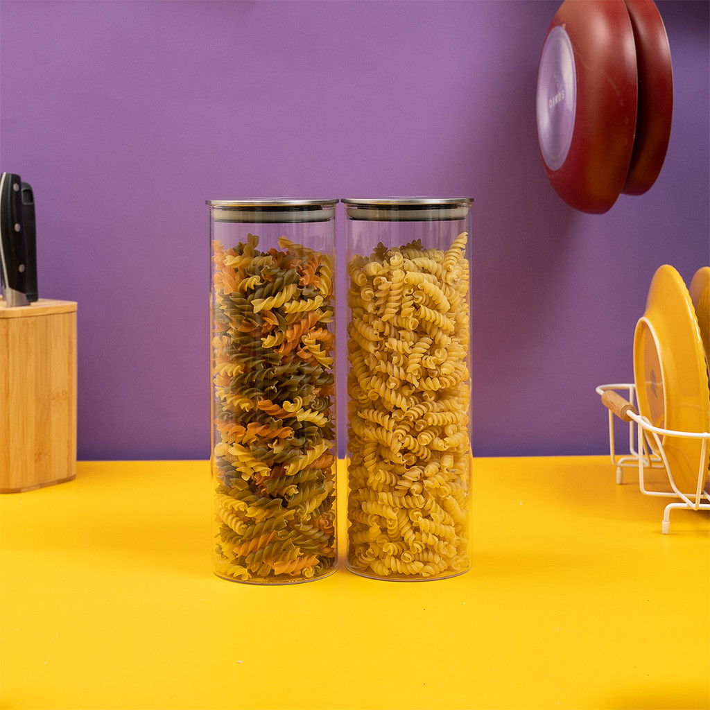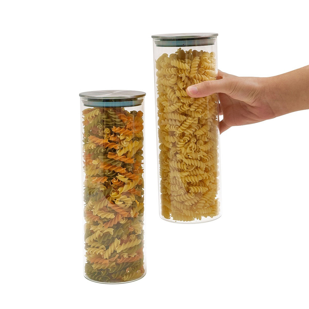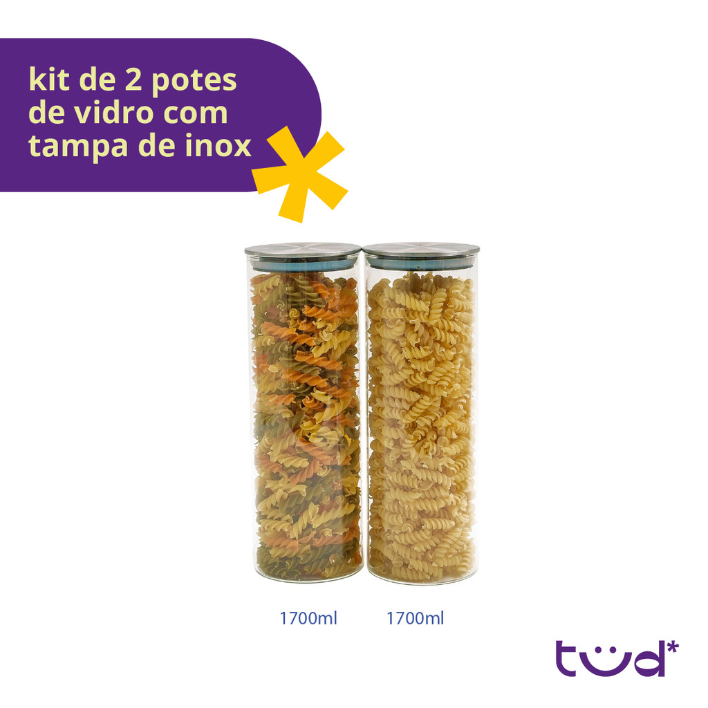 Kit 2 potes de vidro 1,7L com tampa inox hermético - Tud