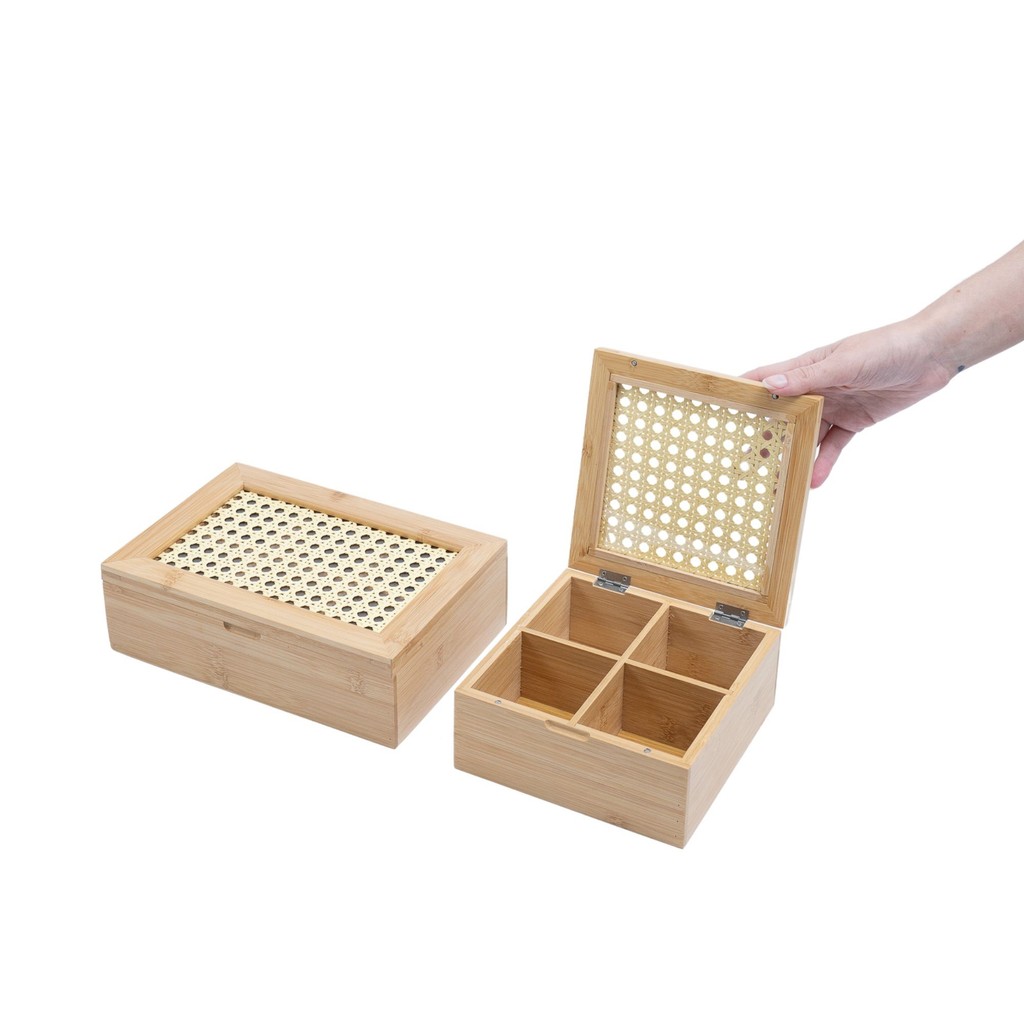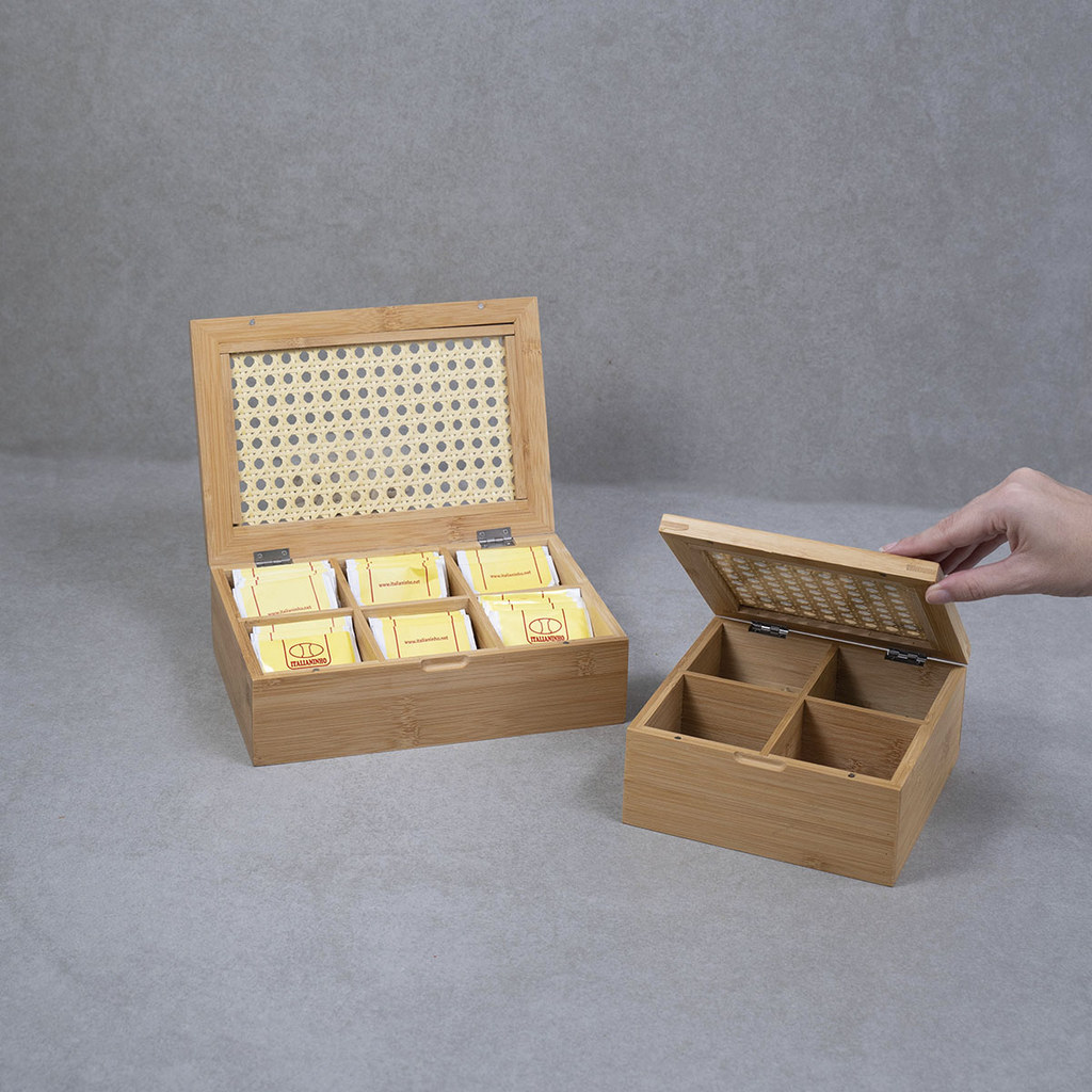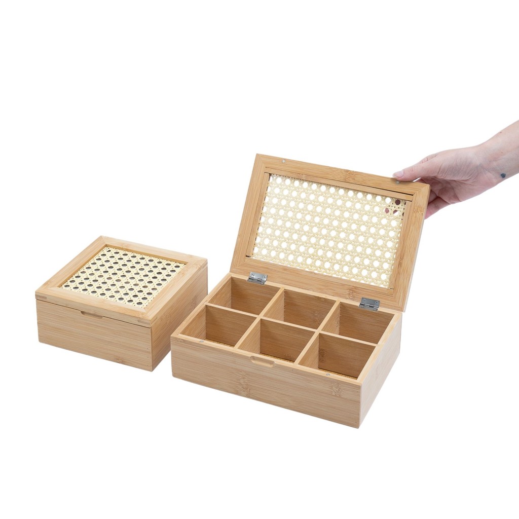 Kit Para Chá Caixa de Bambu Palhinha 4 E 6 Nichos 2 Pç Oikos