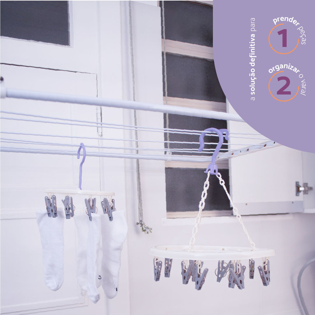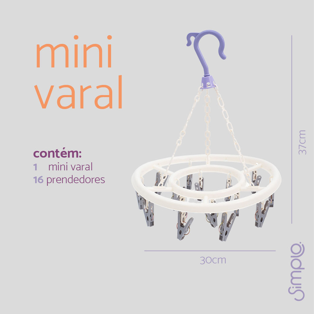 Mini Varal com 16 Prendedores de Plástico - Simplo
