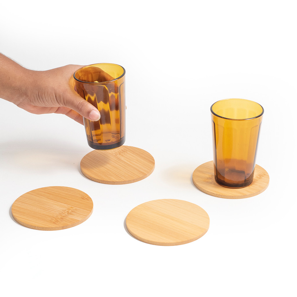Jogo de Porta Copos Redondo Em Bambu 4pcs - Mozcada