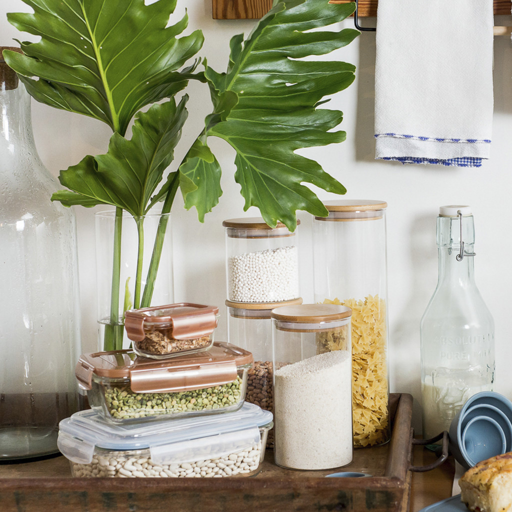 Kit Potes Hermeticos Vidro Circular Bambu 1100ml - 2 pçs Oikos