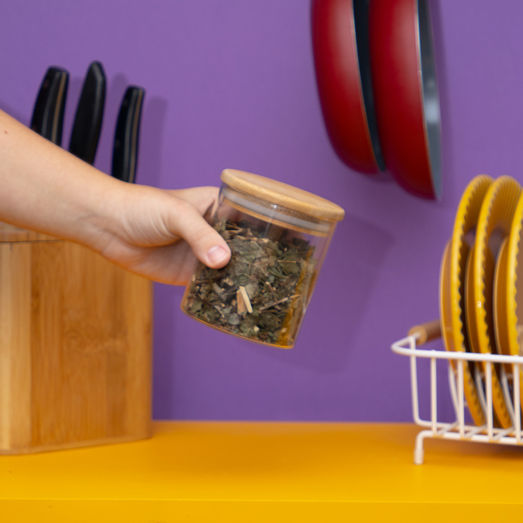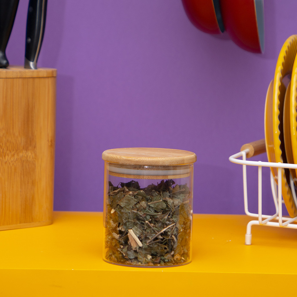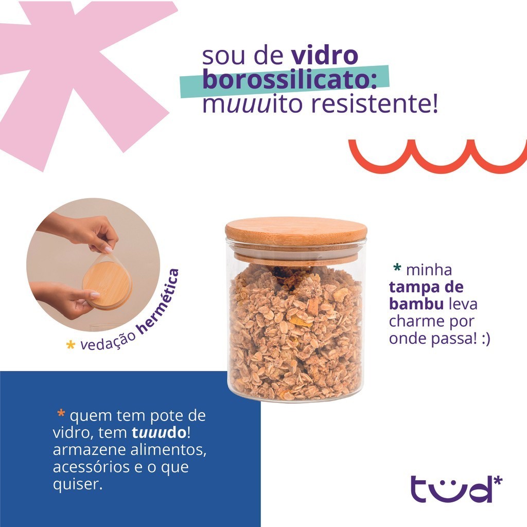 Pote de vidro 400ml com tampa de bambu hermético redondo - Tud