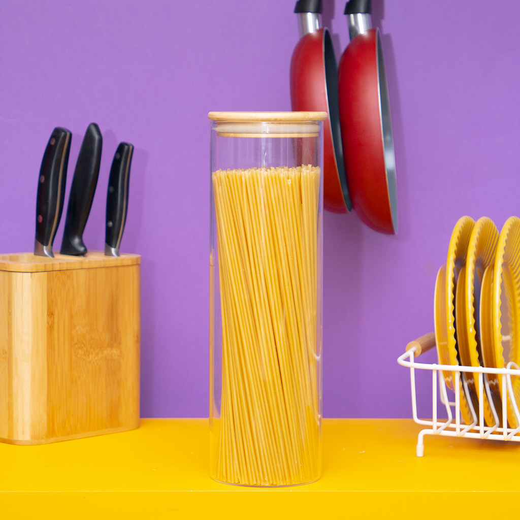 Pote de vidro 2L com tampa de bambu hermético redondo - Tüd