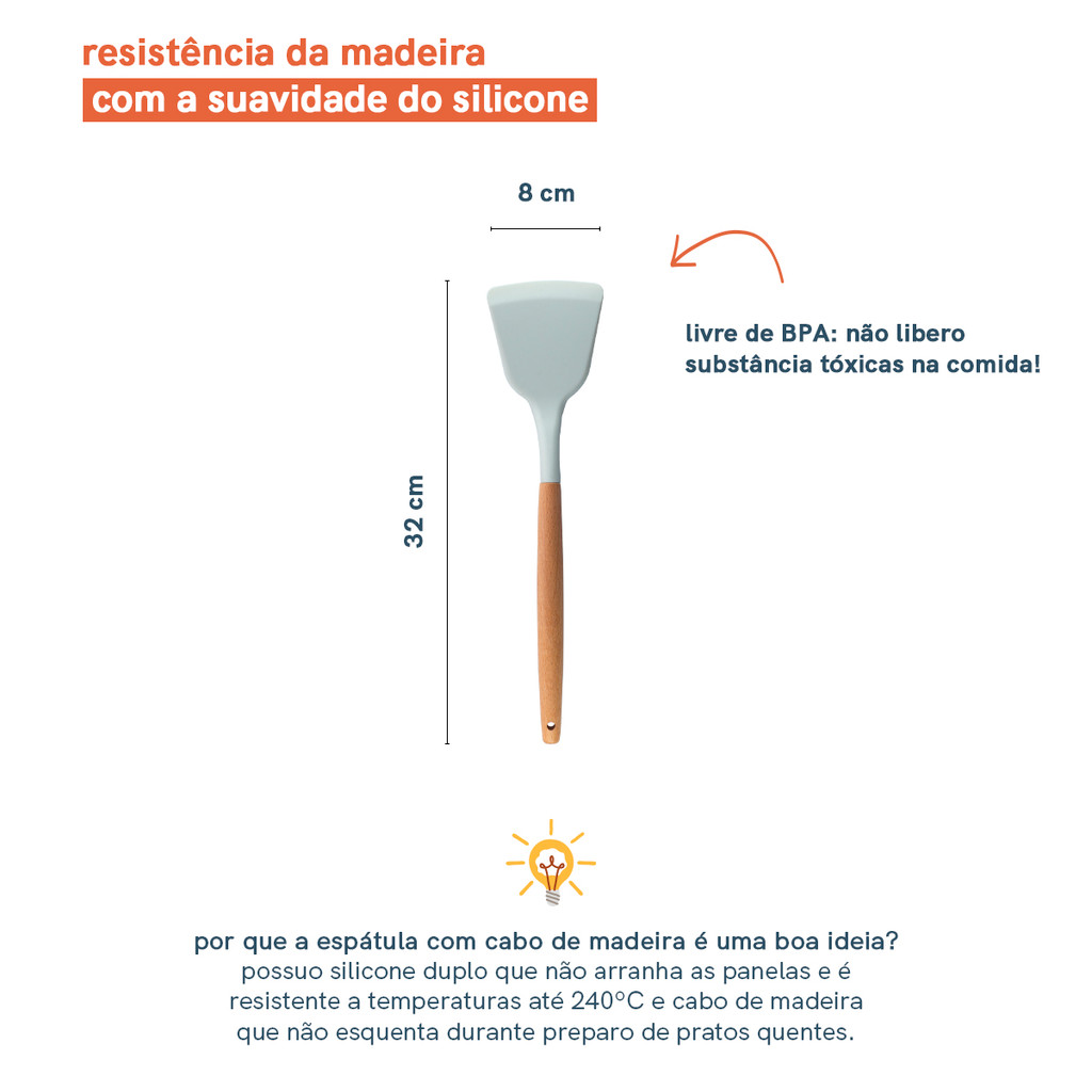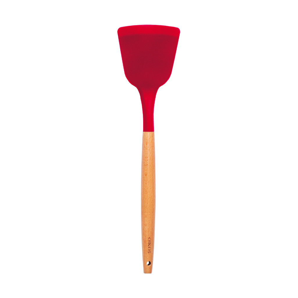 espátula de silicone com cabo de madeira resistente para cozinha - oikos