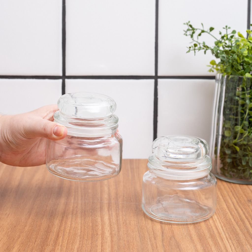 Kit 2 potes de vidro com tampa herméticos redondos 350ml - Mozcada