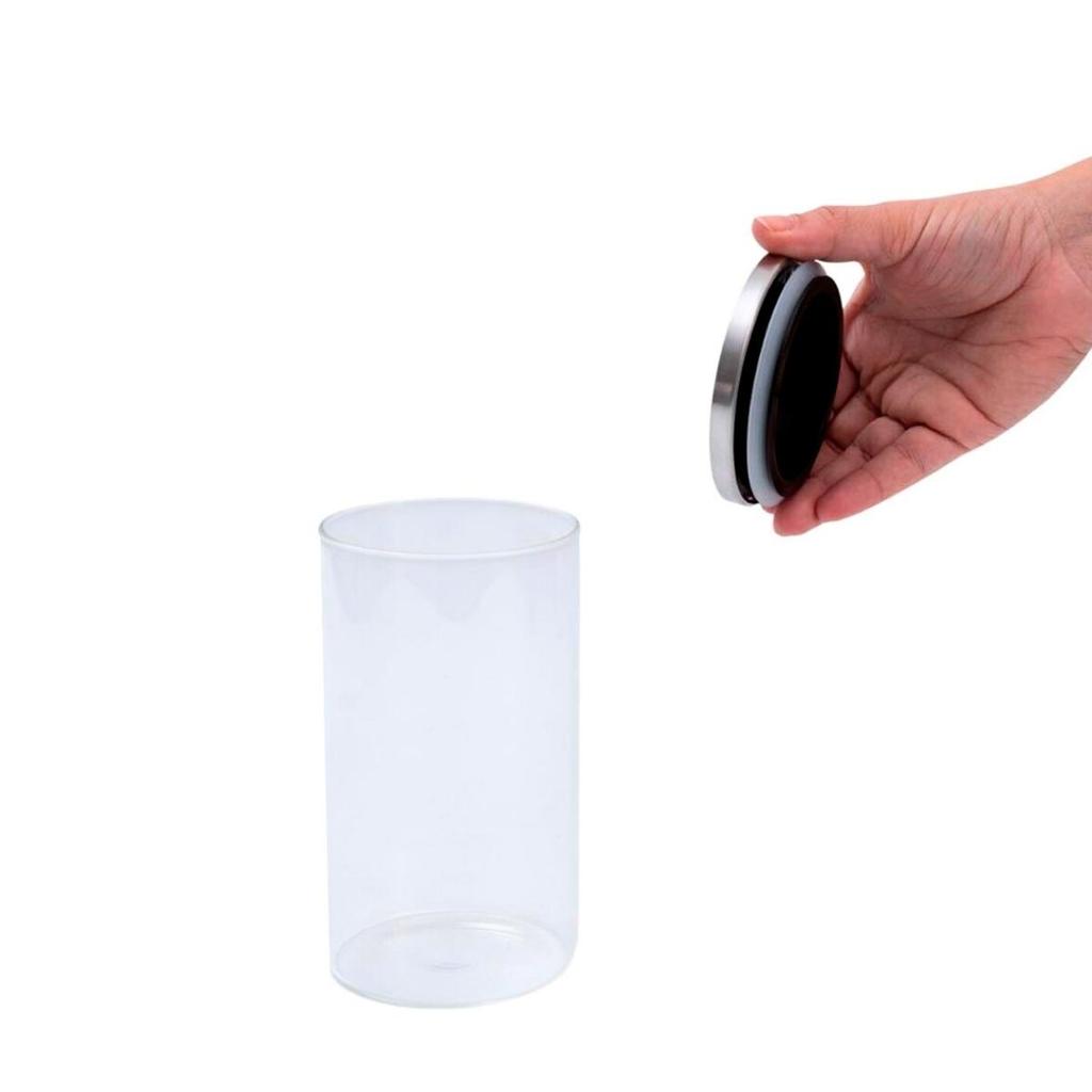 Pote 650ml de vidro com tampa de inox circular mantimento - oikos
