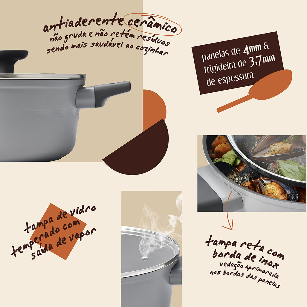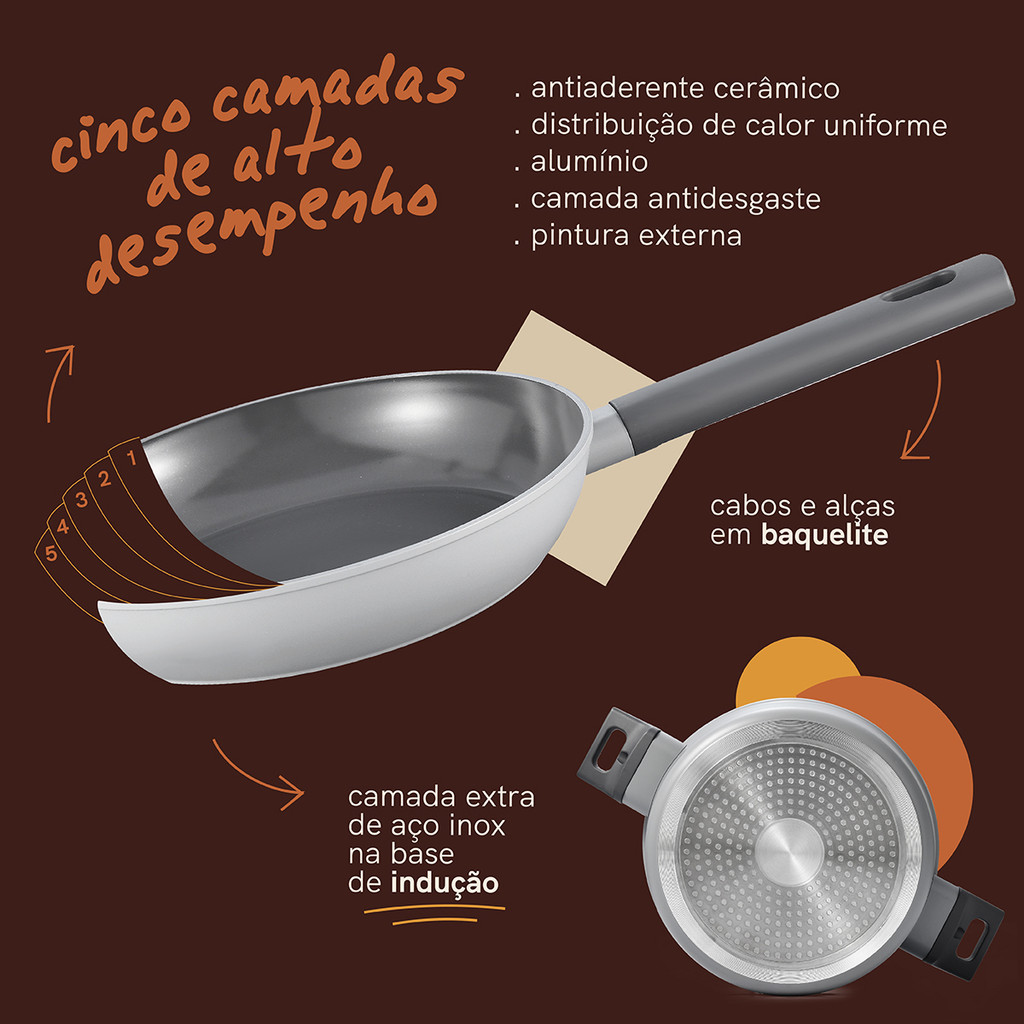 KIT 5 PANELAS DE INDUÇÃO COM ANTIADERENTE CERÂMICO MOU DE TRUFA - OIKOS