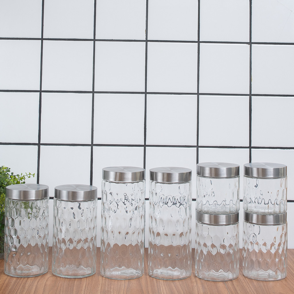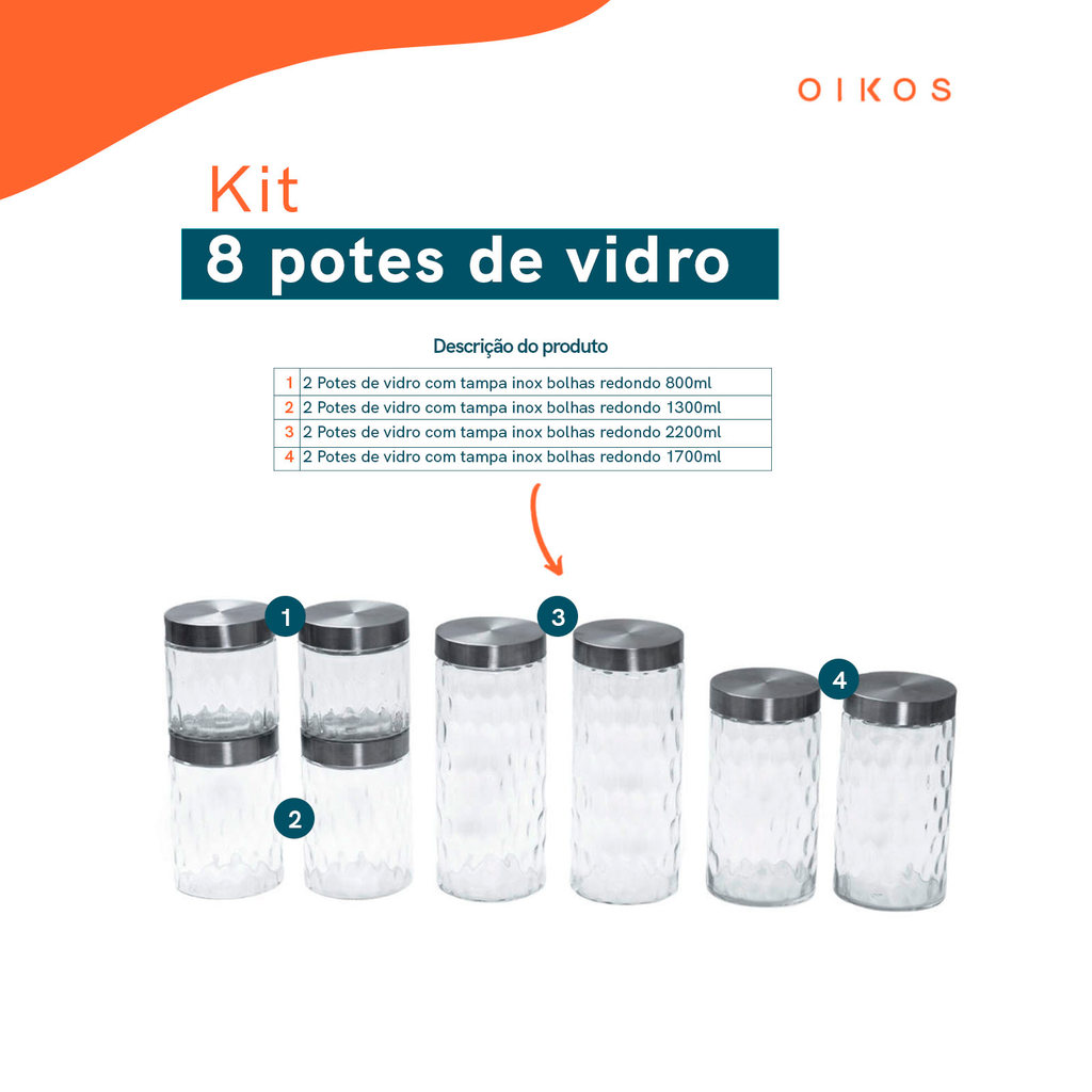 Kit 8 Pote de Vidro com Tampa Inox Bolhas Redondo 800ml, 1300ml, 1700ml E 2200ml - Mozcada