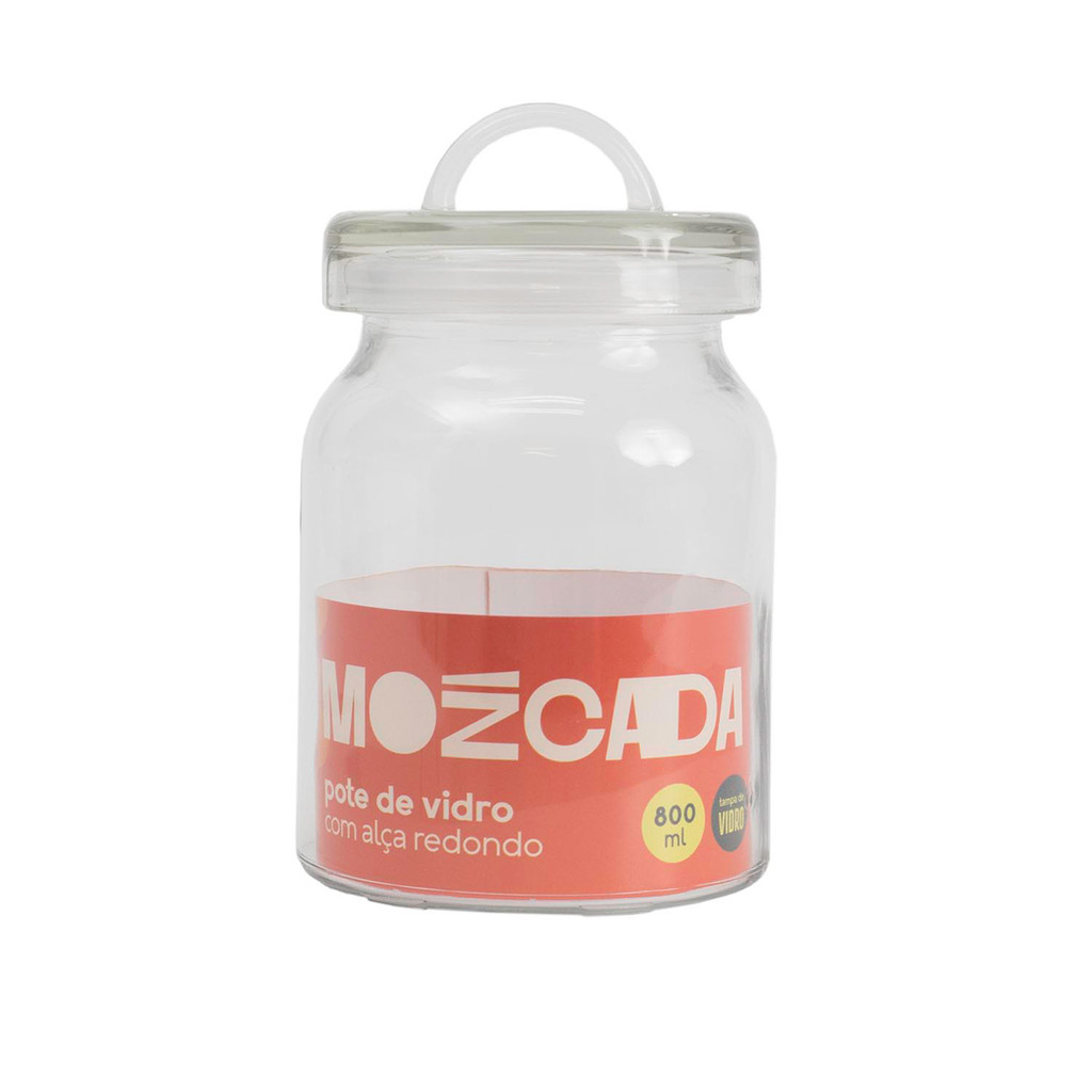 Pote de vidro 800ml com alça na tampa redondo - Mozcada