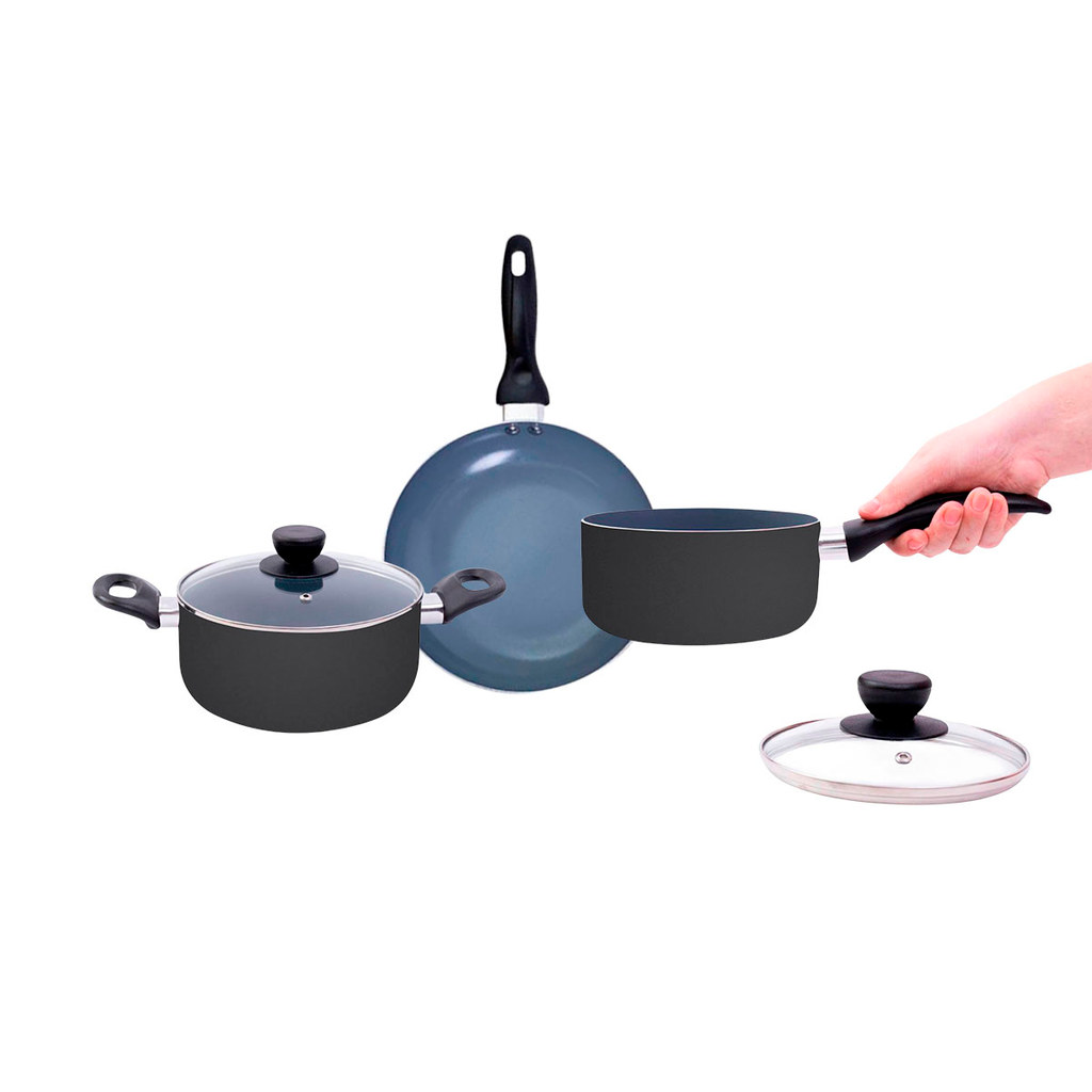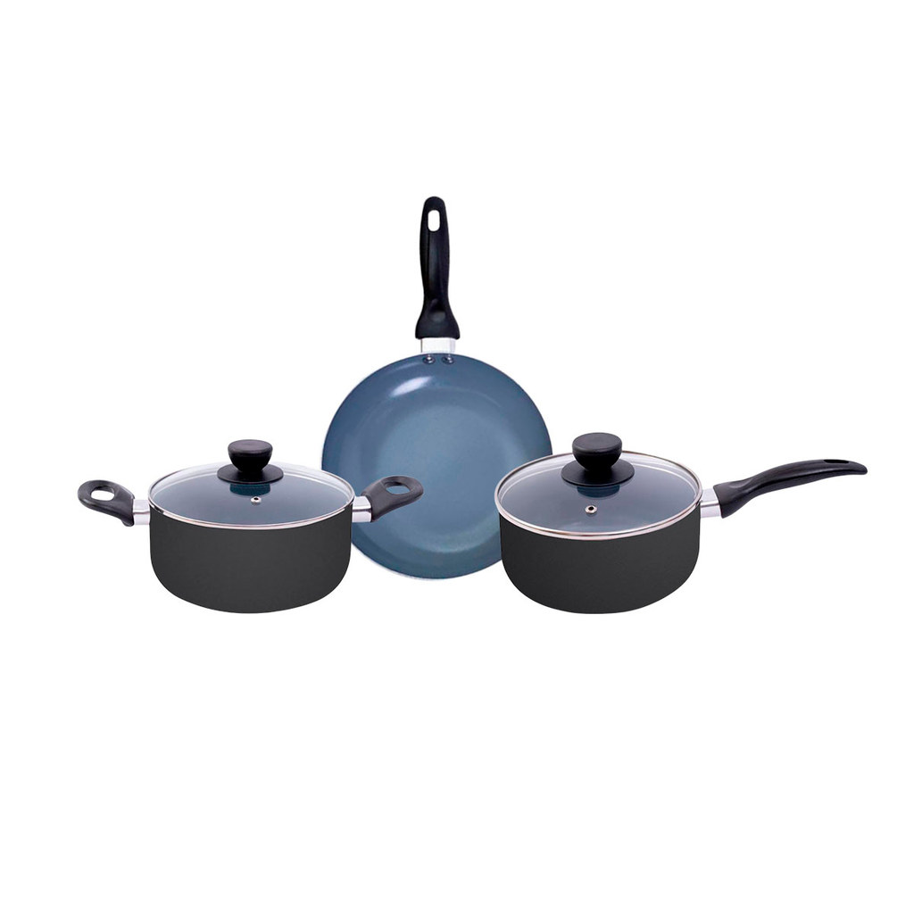 jogo de panelas 3 pçs antiaderentes de cerâmica e alumínio - oikos