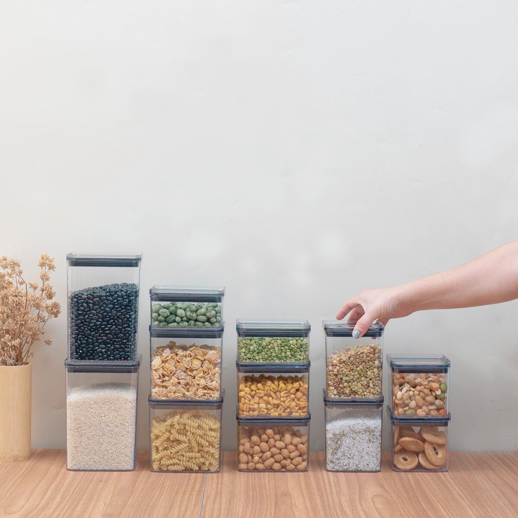 kit 12 potes herméticos de acrílico transparente quadrados - oikos