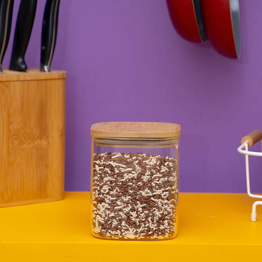 Pote de vidro 800ml com tampa de bambu hermético quadrado - Tüd