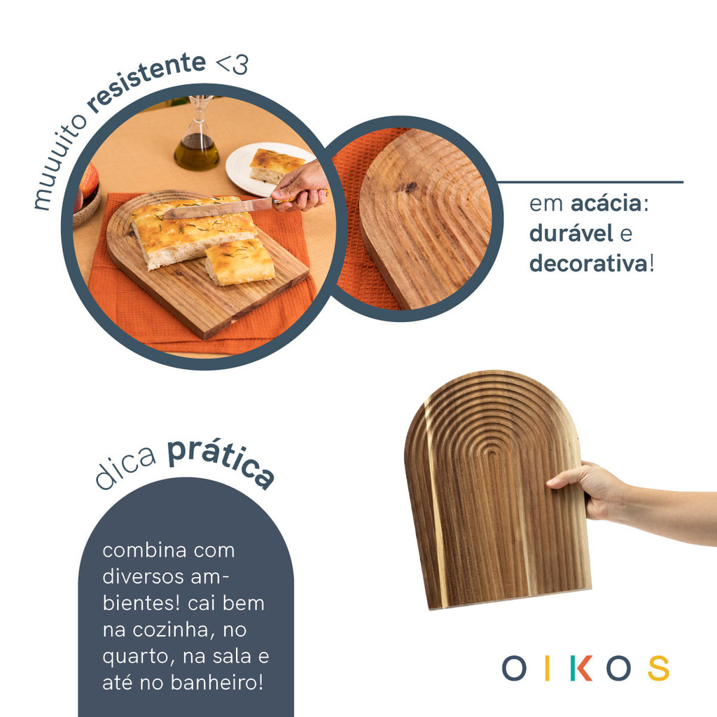 bandeja de madeira acácia arcos multiuso - Oikos