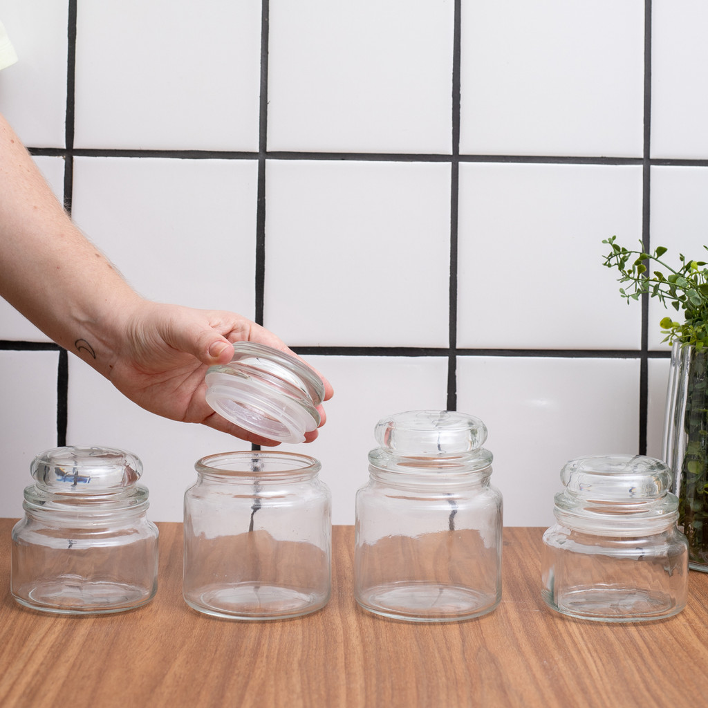 Kit 4 potes de vidro com tampa herméticos redondos 350ml e 500ml - Mozcada