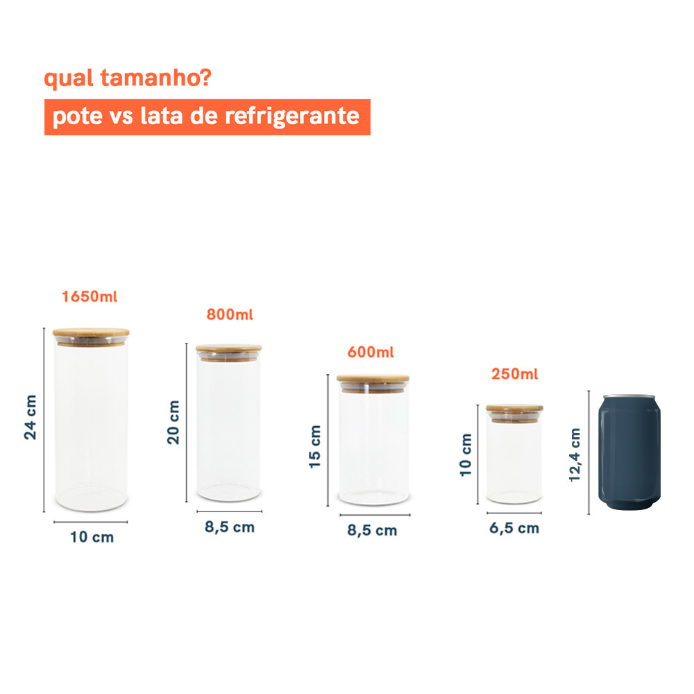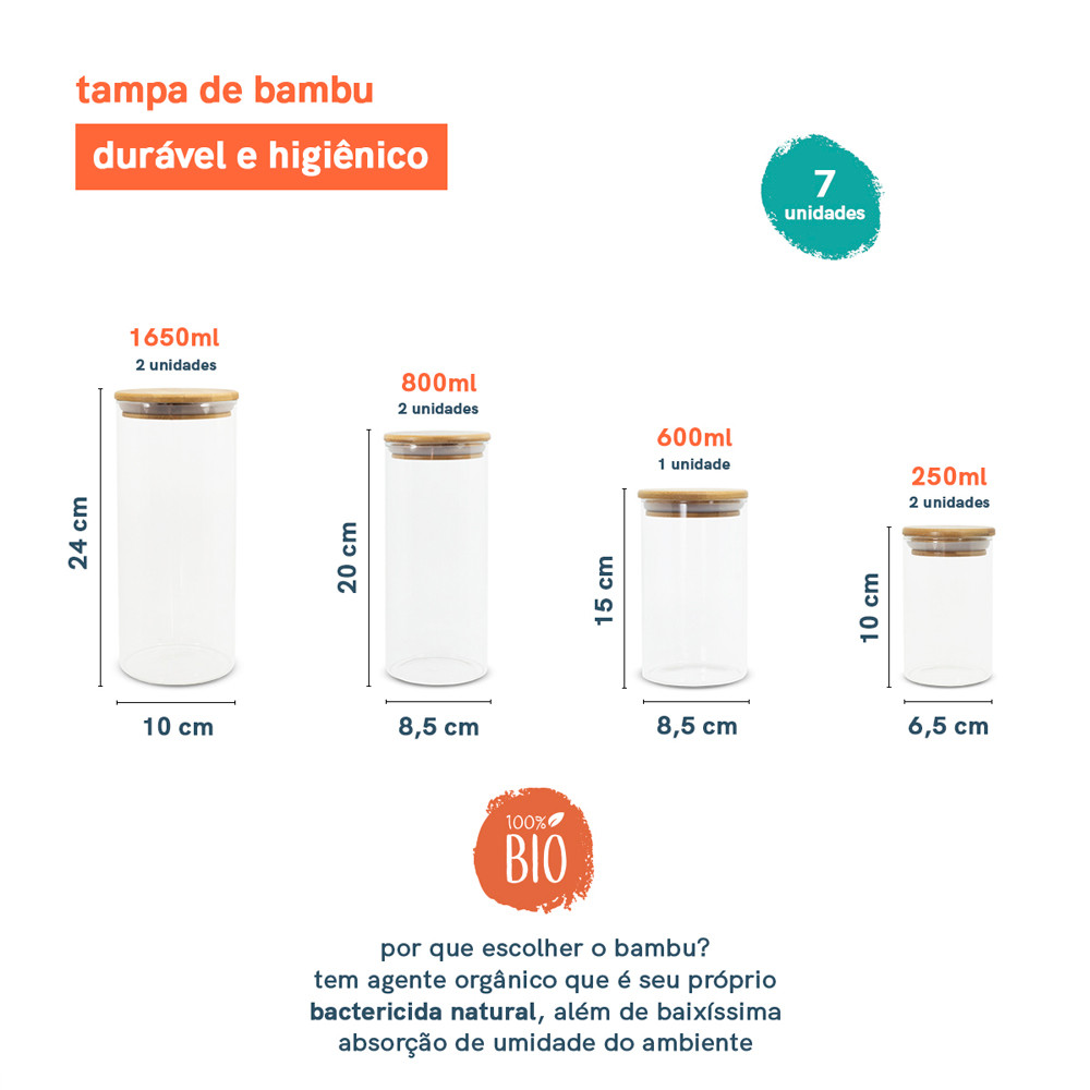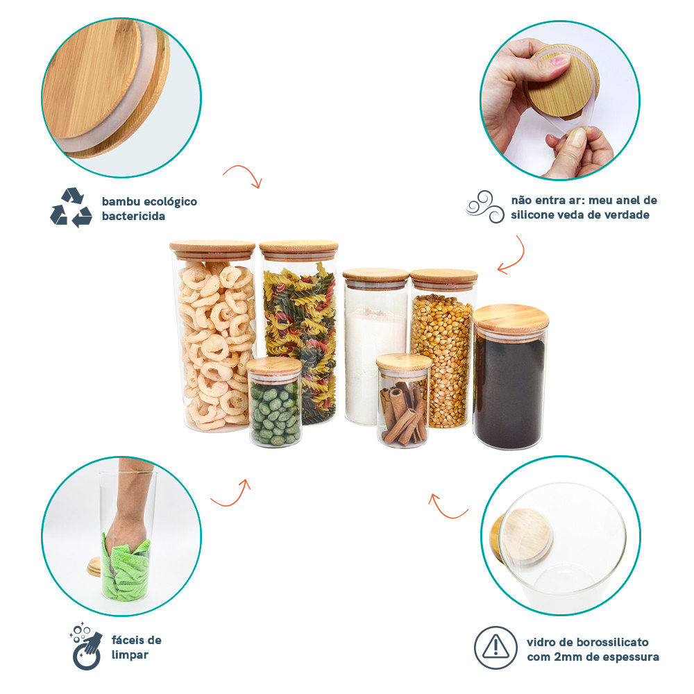 Potes de Vidro P/ Mantimentos C/ Tampa Bambu Oikos - 7 Pçs