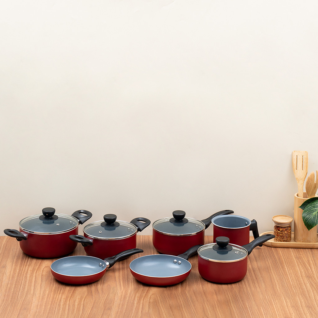 Jogo de panelas antiaderente cerâmica 7 pçs vermelha - Oikos