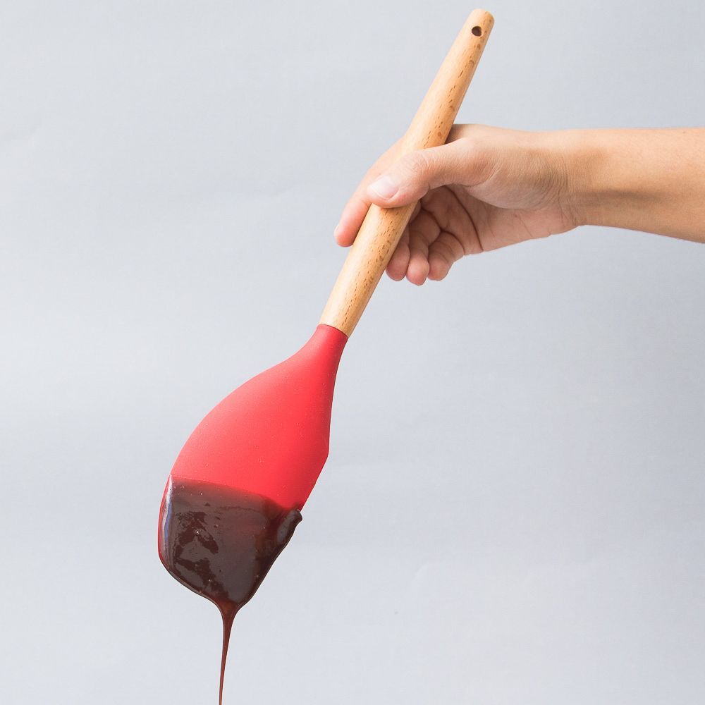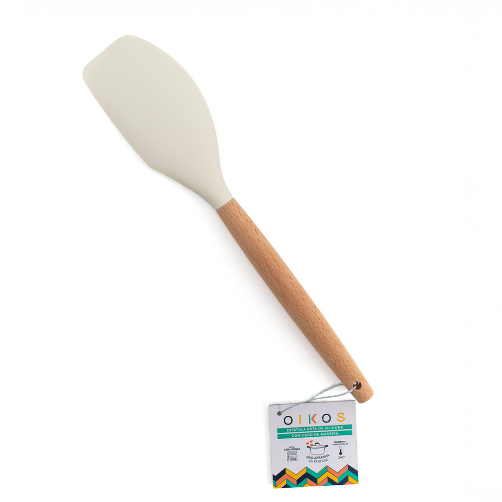 espátula de silicone reta pão duro com cabo de madeira resistente para cozinha - oikos