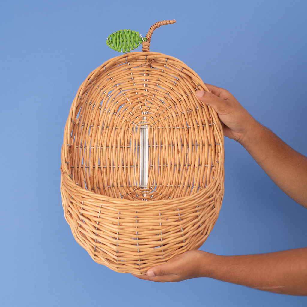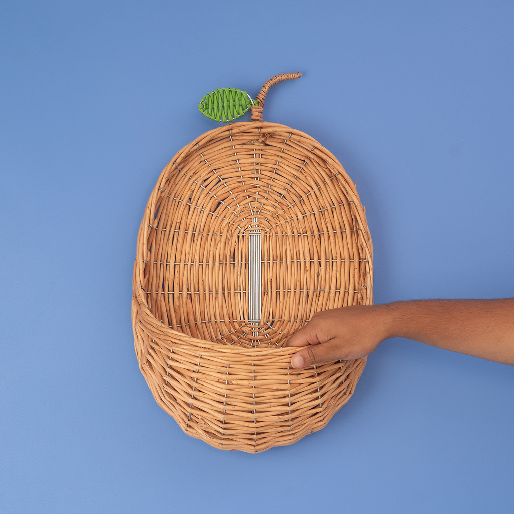 cesto organizador de parede pera 25cm com textura palha rattan - Oikos