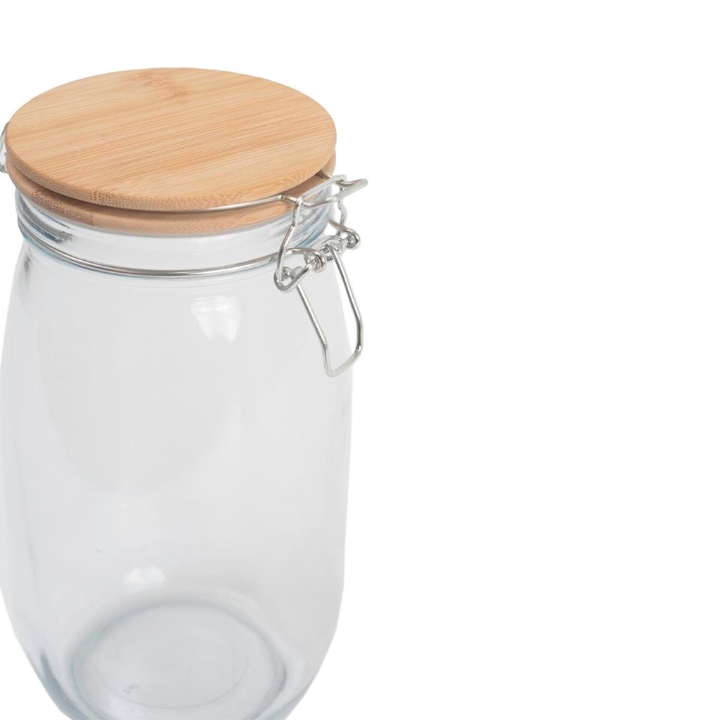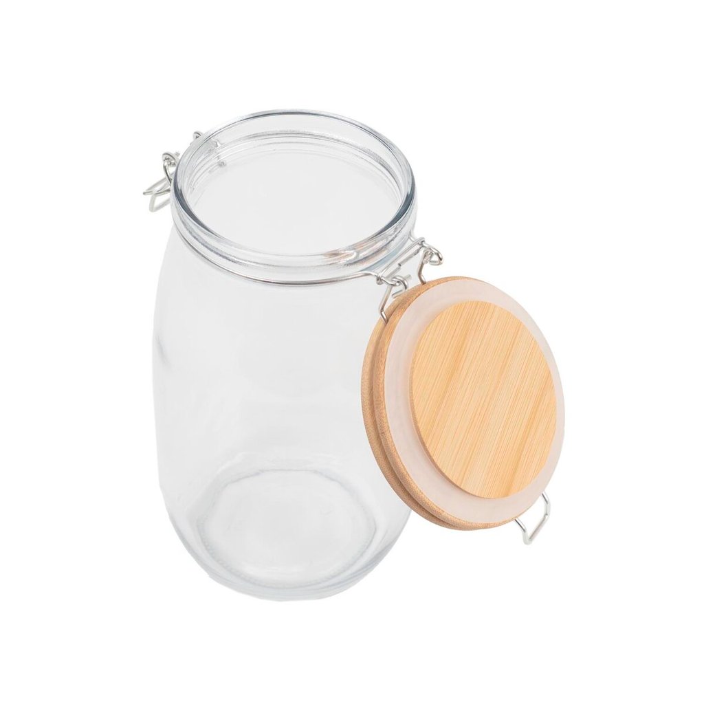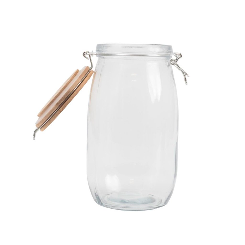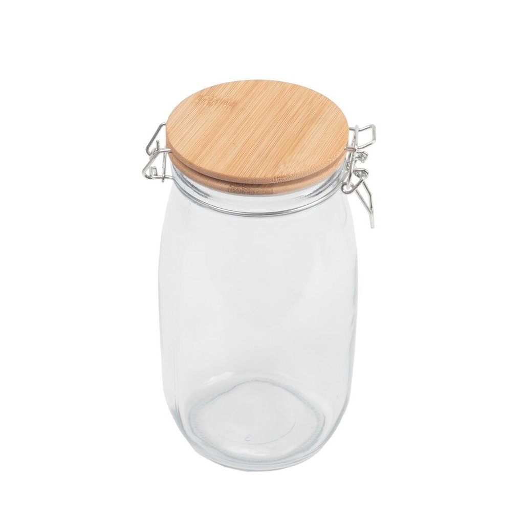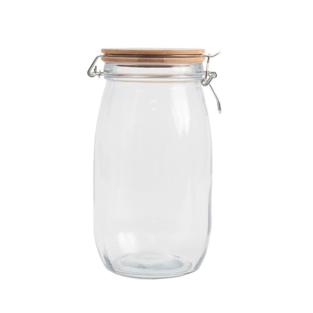 pote de vidro 1,5L com tampa de bambu e trava - Mozcada