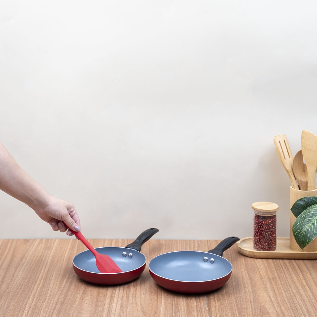 Jogo de frigideiras antiaderentes e espátula de silicone vermelho - Oikos