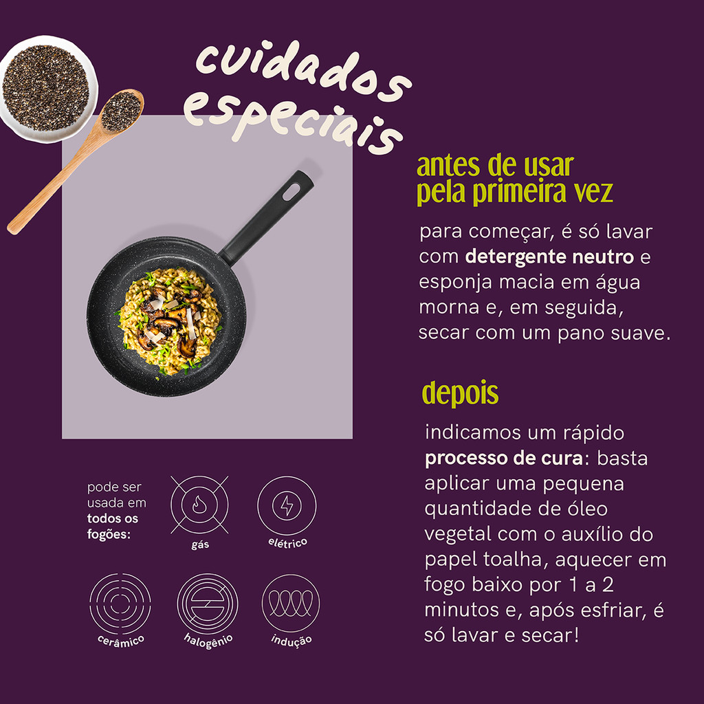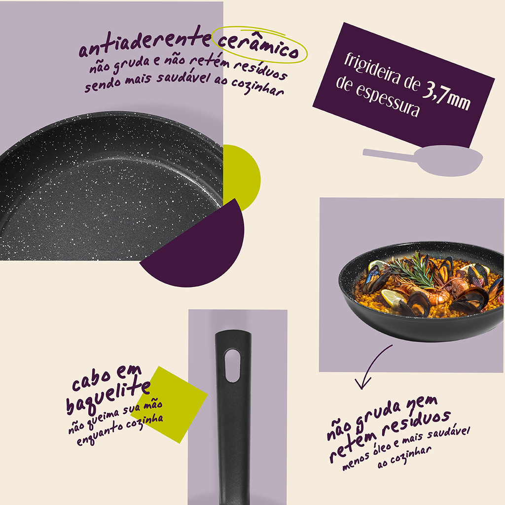 FRIGIDEIRA 24CM DE INDUÇÃO COM ANTIADERENTE CERÂMICO MOU DE CHIA - OIKOS