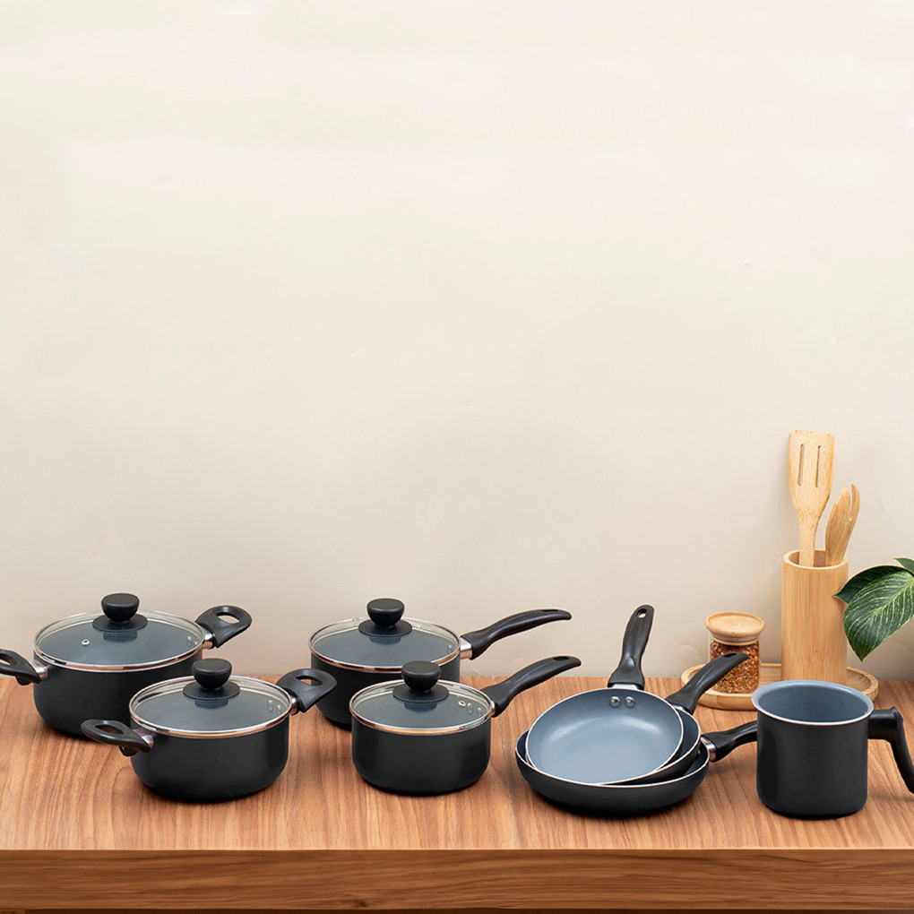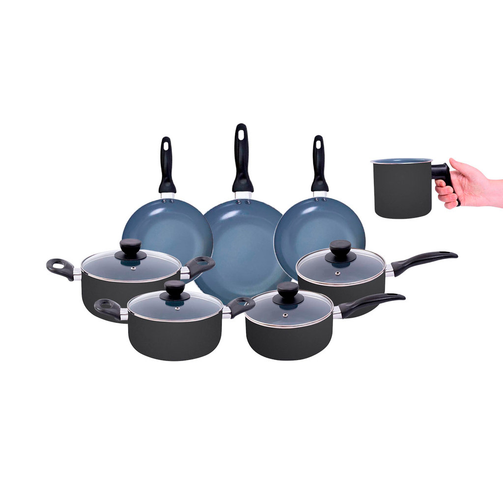jogo de panelas 8 pçs antiaderentes de cerâmica e alumínio - oikos