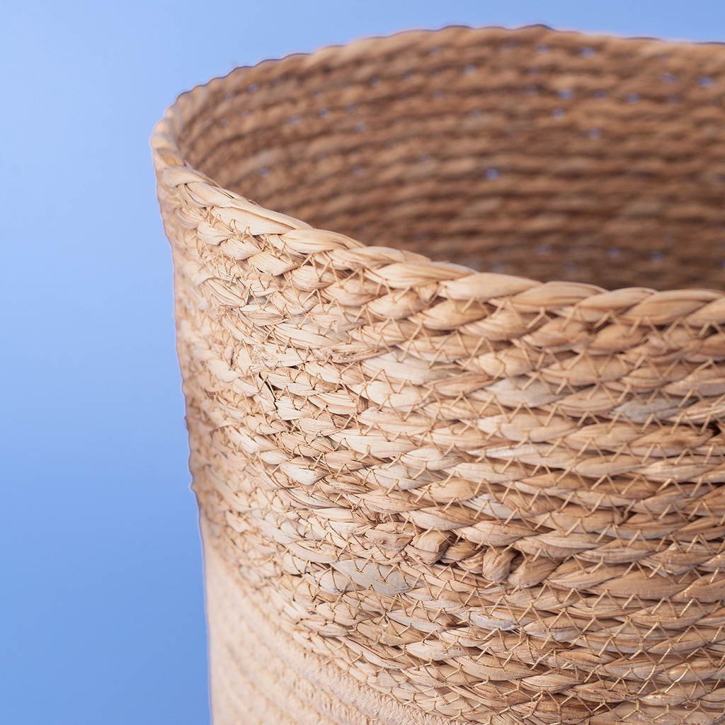 cesto organizador redondo com alças 29cm de palha seagrass e corda - Oikos