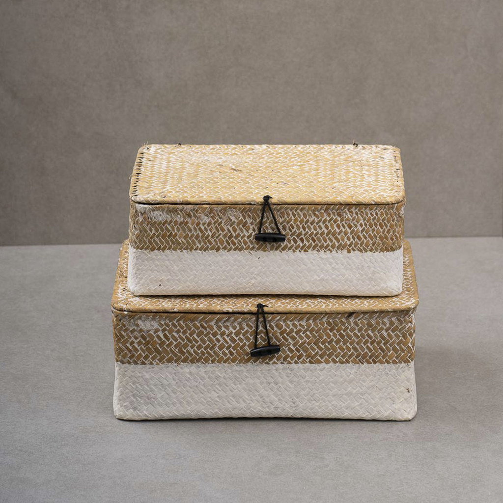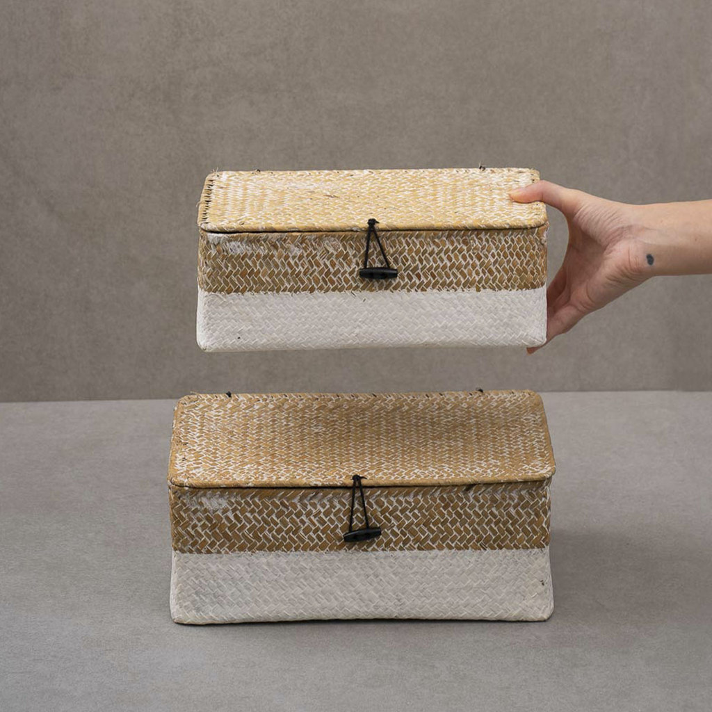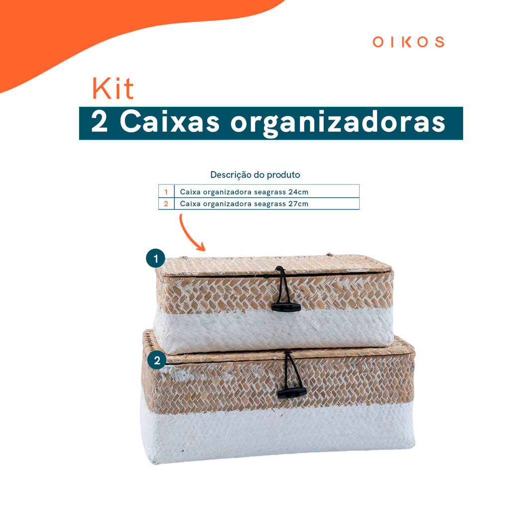 Kit 2 Caixas Organizadoras Armazenamento Decorativa Palha Seagrass - Oikos
