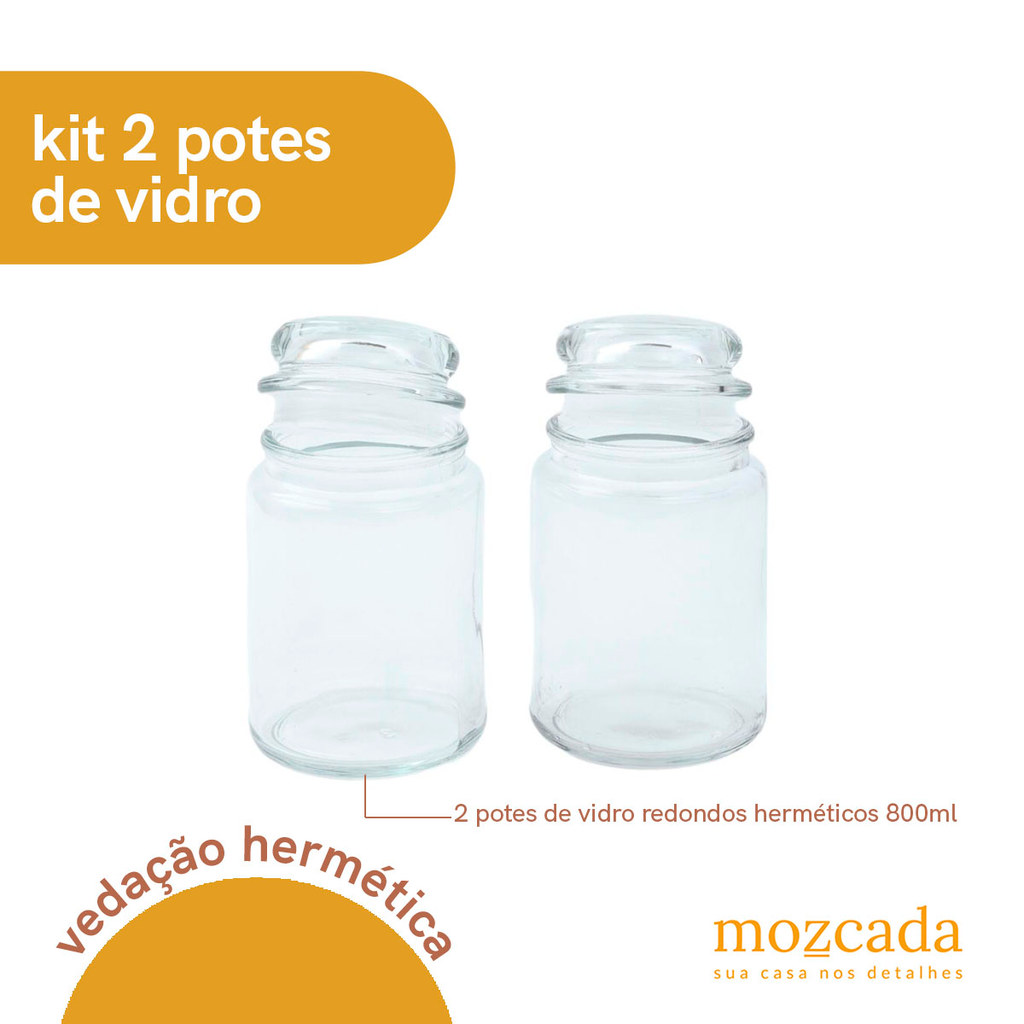 Kit 2 potes de vidro com tampa herméticos redondos 800ml - Mozcada