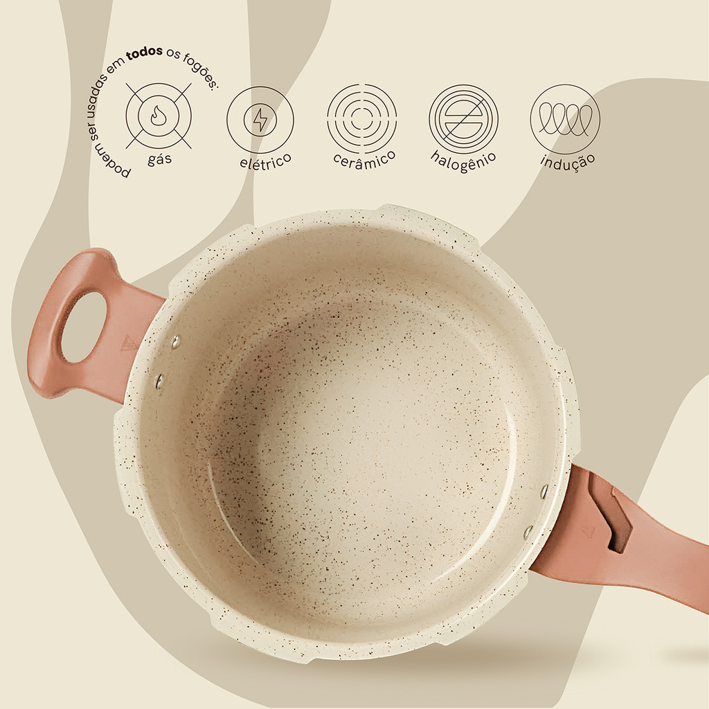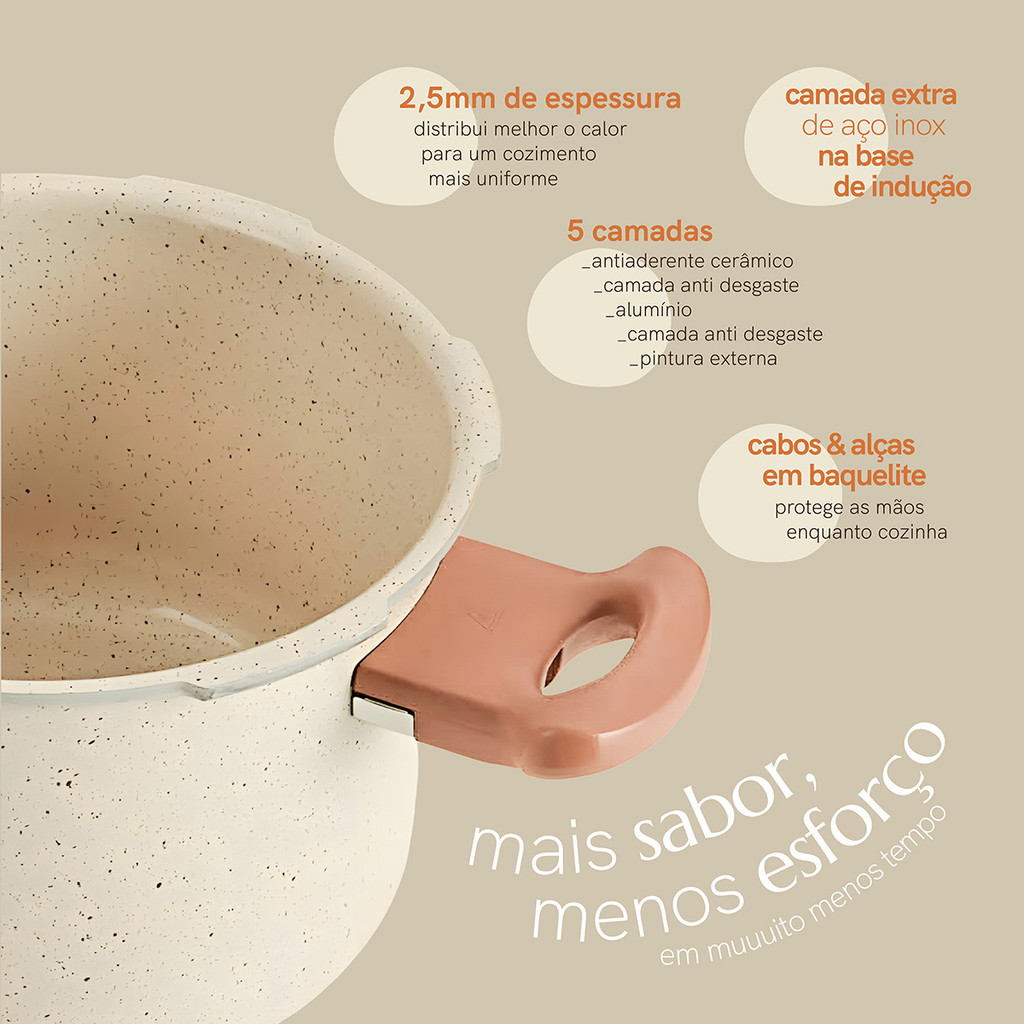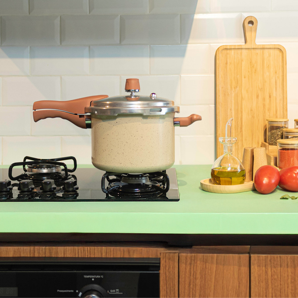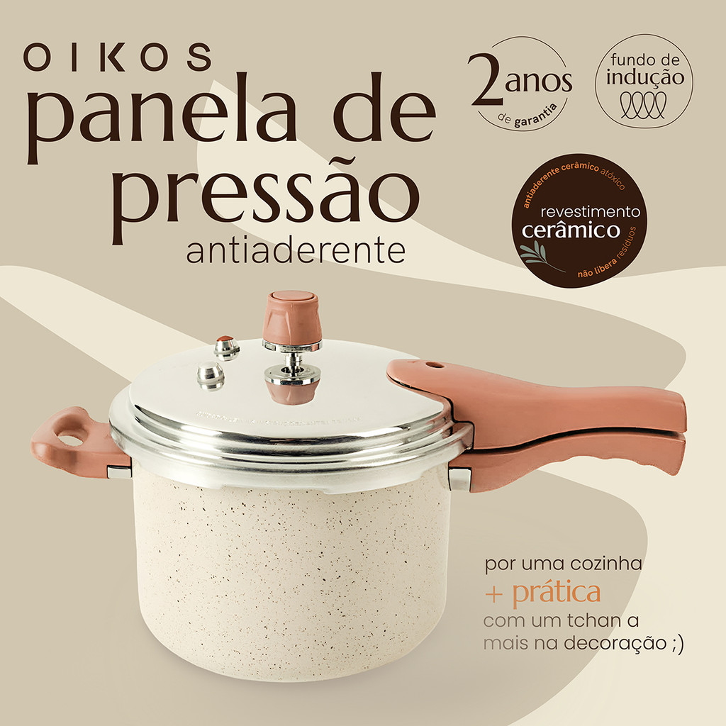 PANELA DE PRESSÃO 4,4L DE INDUÇÃO COM ANTIADERENTE CERÂMICO - OIKOS